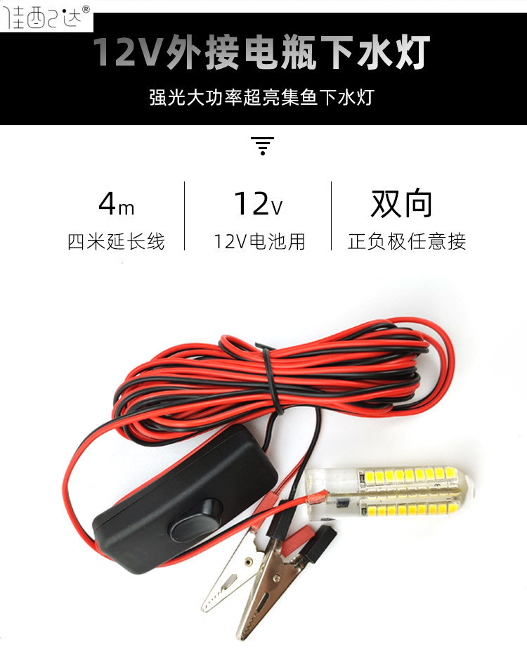 下水燈12V強光超亮水下燈防水照明黃光led水下燈泡12伏夜釣集魚燈
