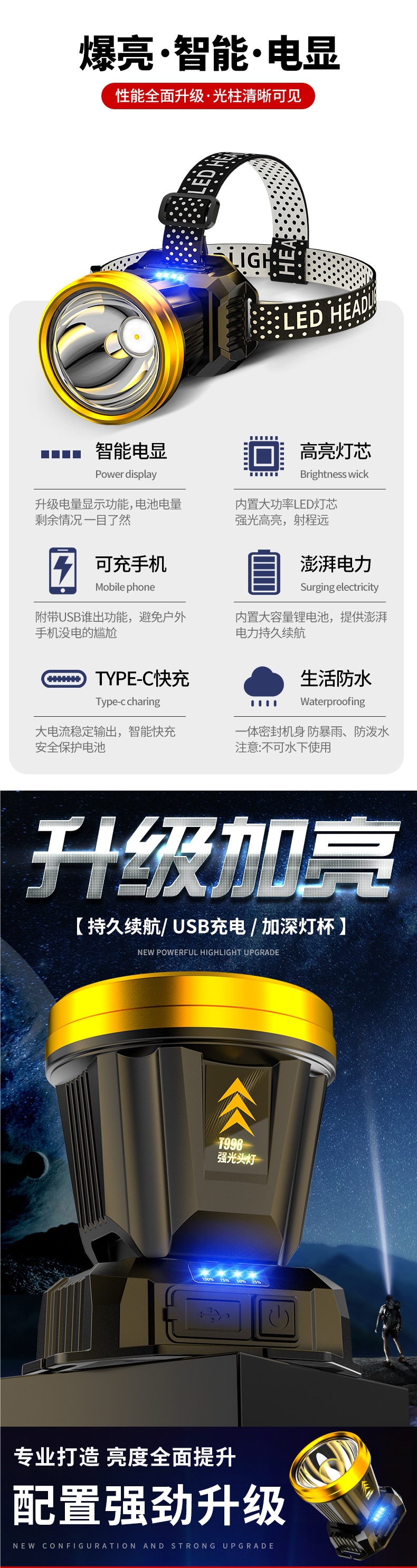 頭燈超亮強光充電續航超長礦燈感應釣魚夜釣頭戴式led照明燈