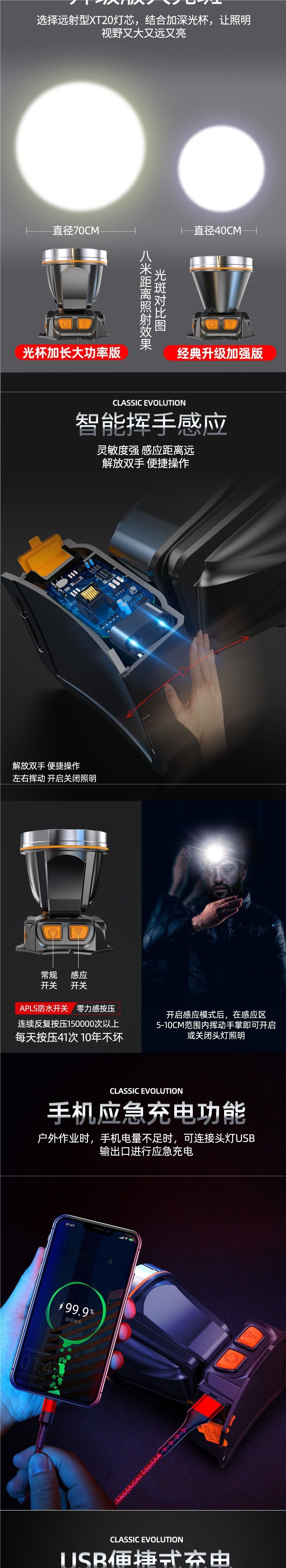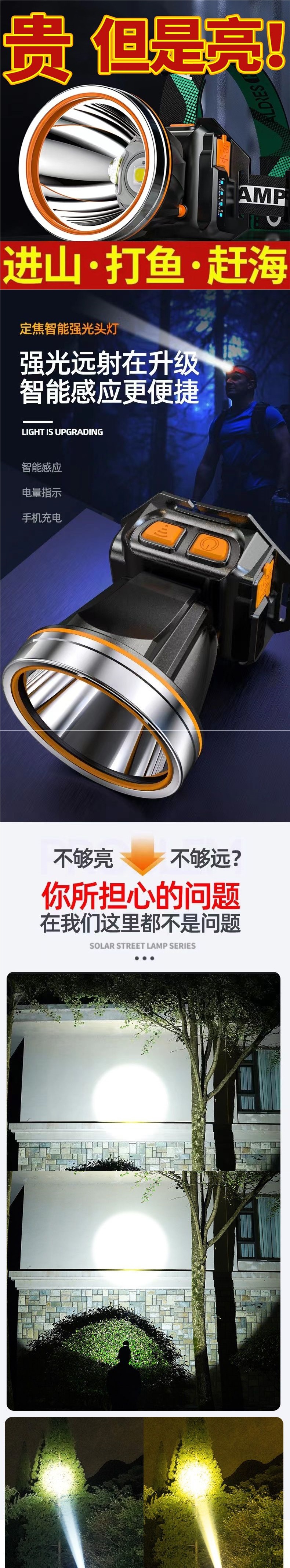 超亮led頭燈強光可充電野外超亮夜釣魚礦燈感應頭戴式戶外手電筒