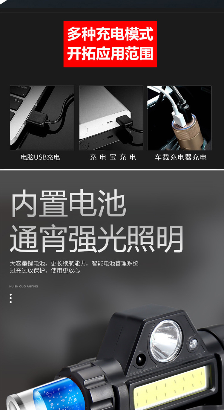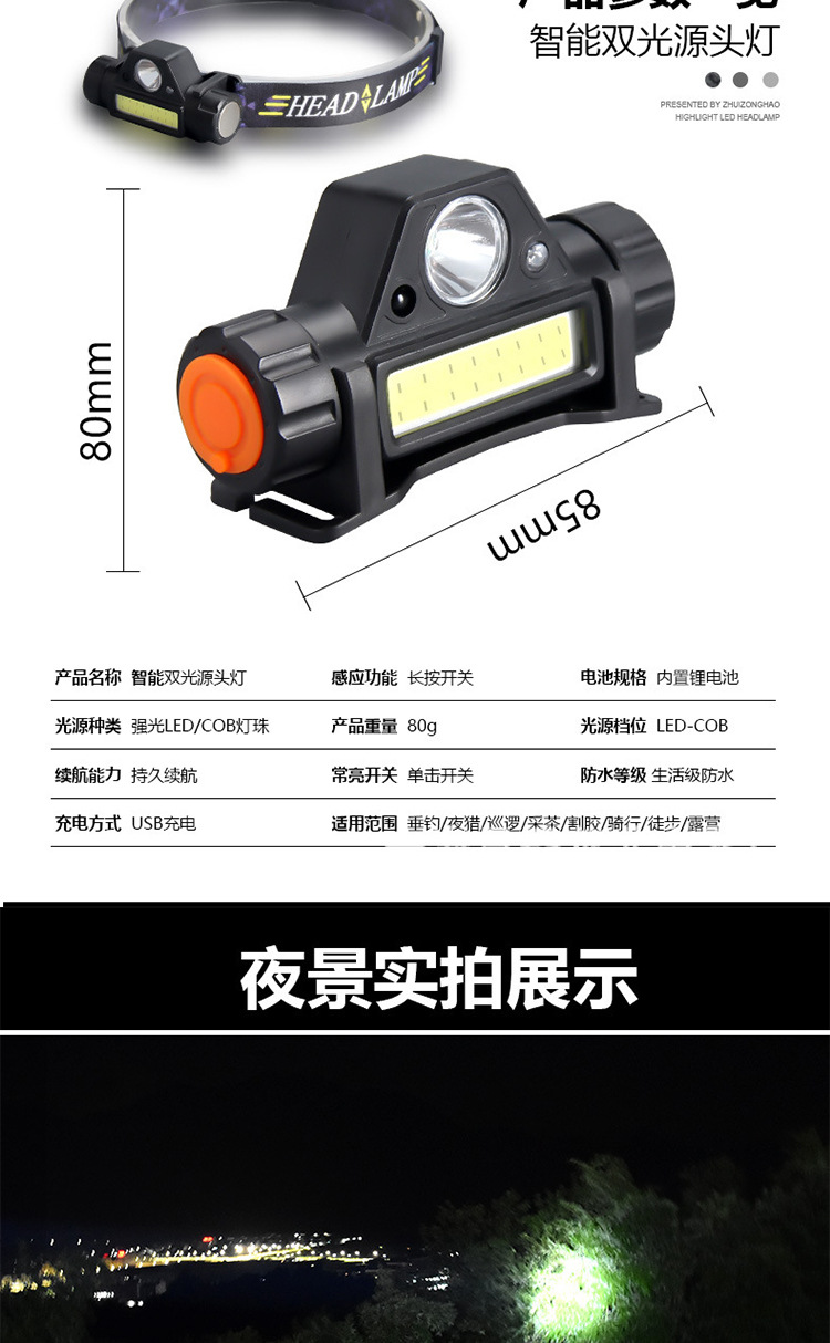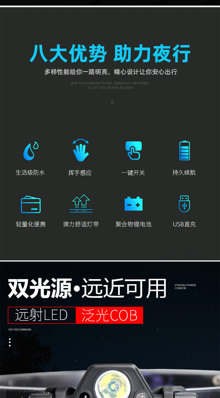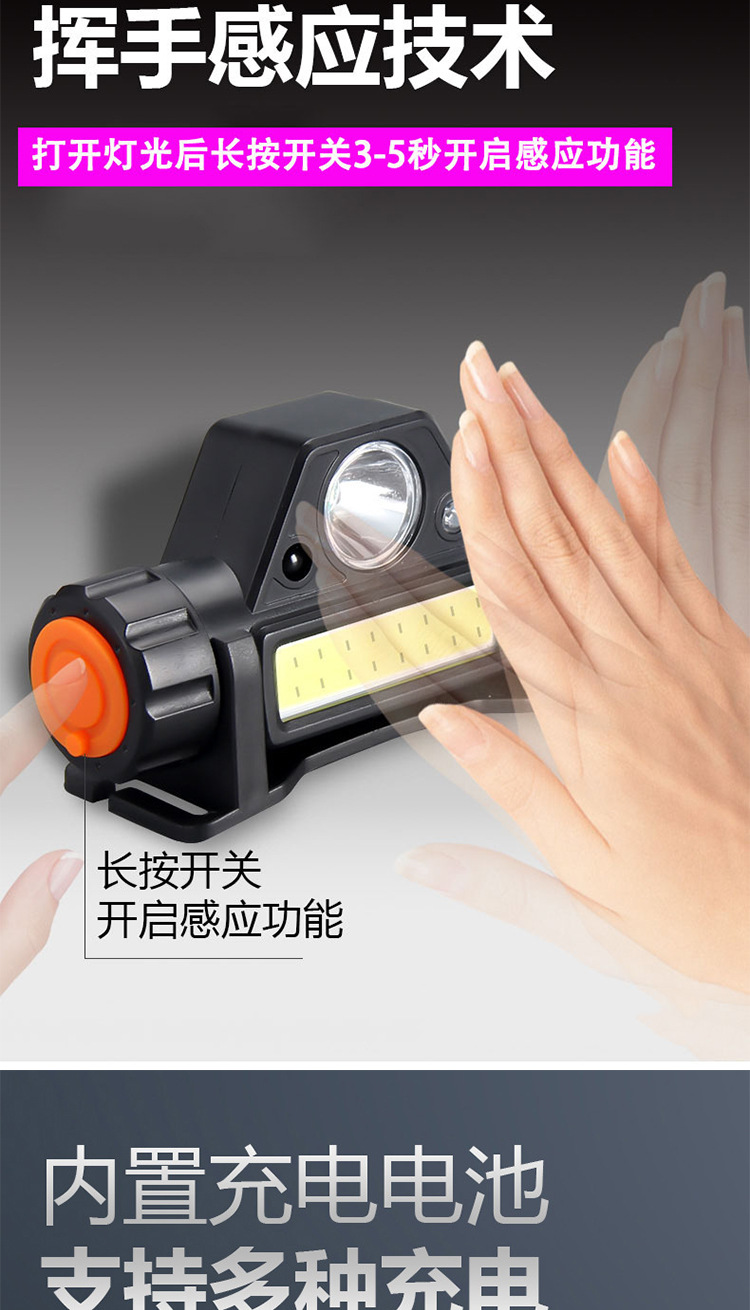 夜釣魚頭燈強光充電超亮頭戴式感應LED燈USB筒釣魚燈防水上餌戶外