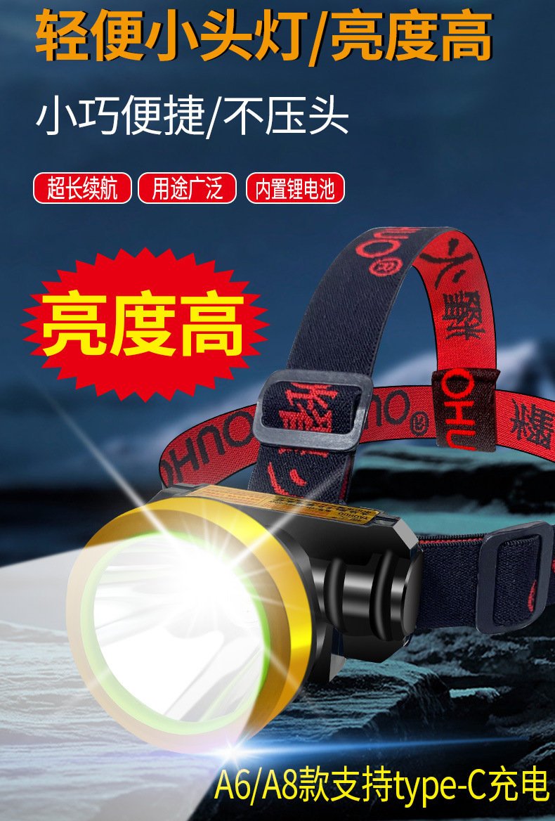 led強光頭燈充電超亮頭戴式照明燈手電筒小型夜釣魚戶外登山