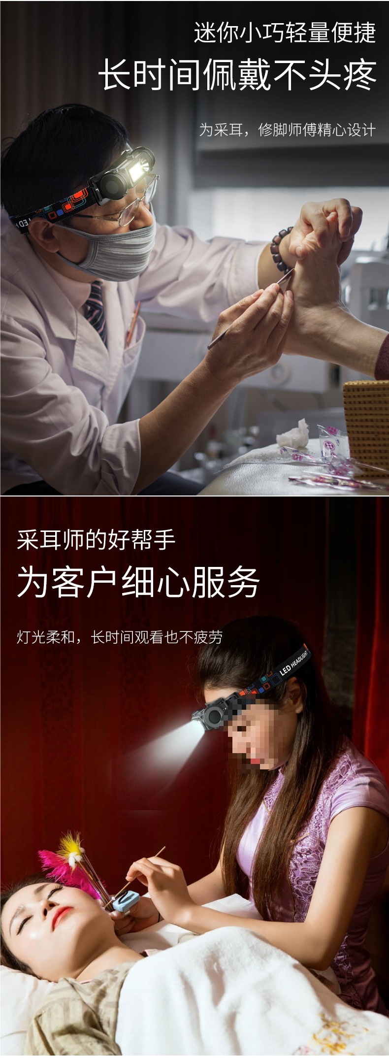 採耳頭燈聚光修腳師挖耳掏耳朵 充電 頭戴式工作led輕便 照明燈