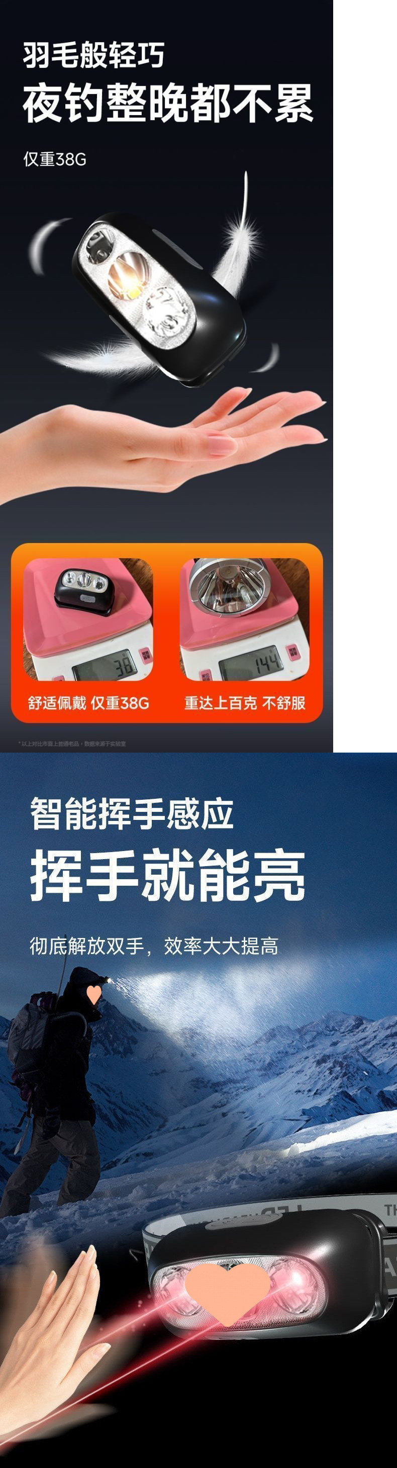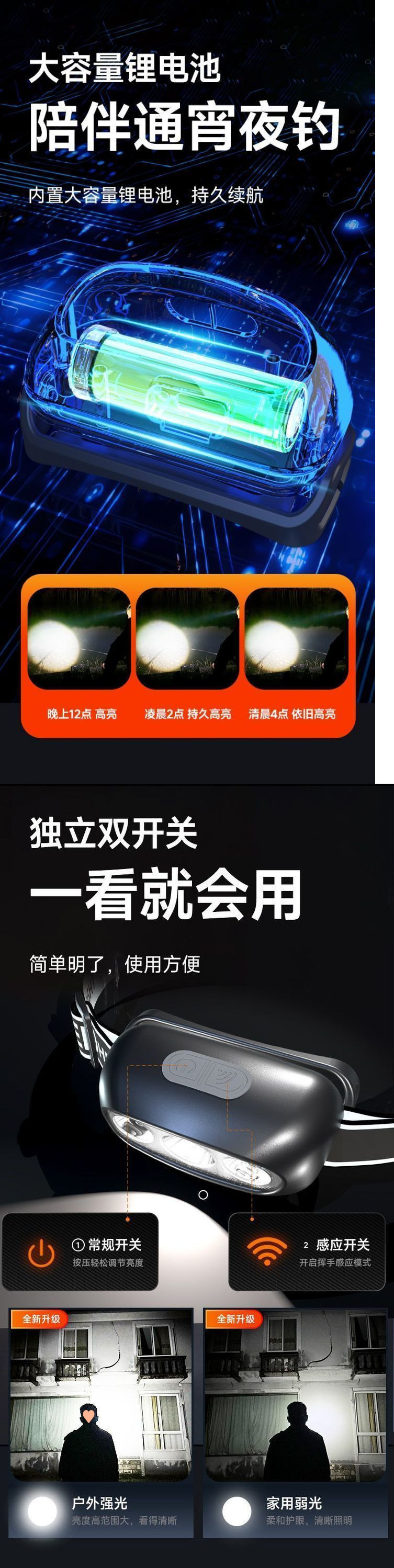 LED強光超亮頭燈續航釣魚專用超輕感應可充電充電可攜式頭戴式