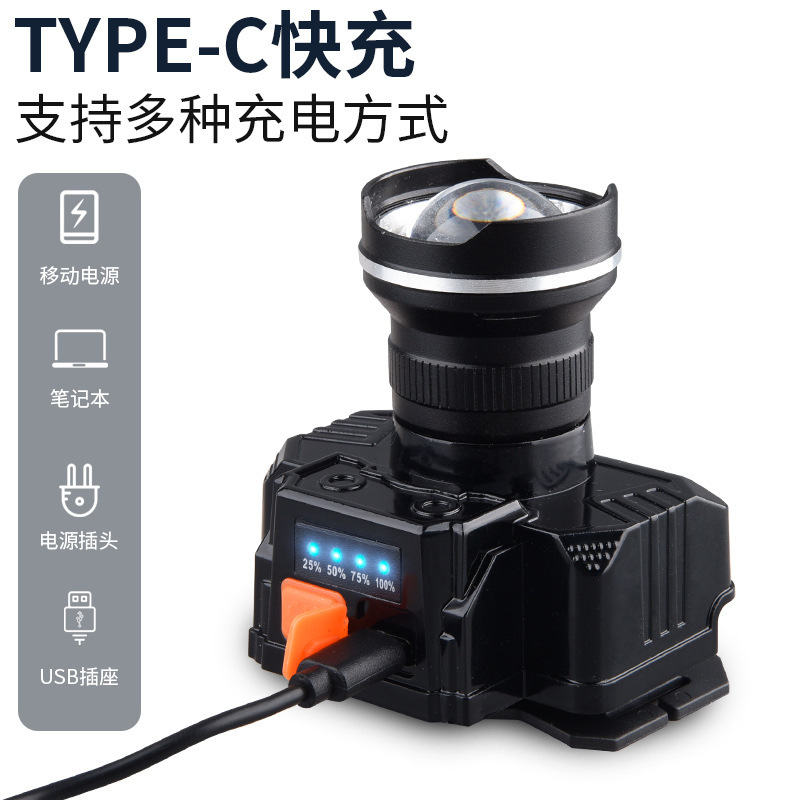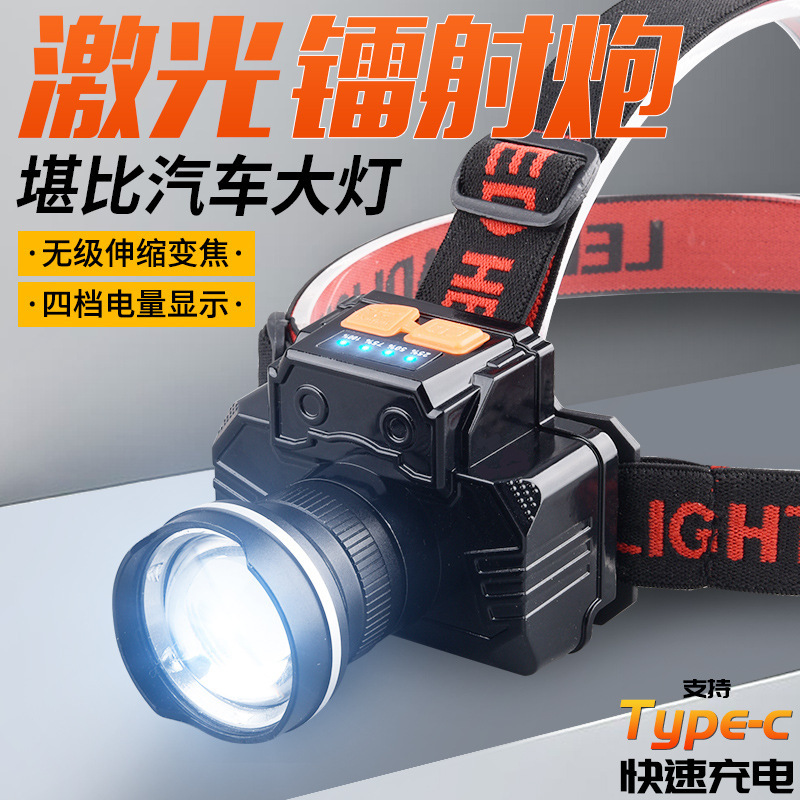 鋁合金相機頭燈白雷射10W頭戴式電筒戶外釣魚強光頭燈T-27