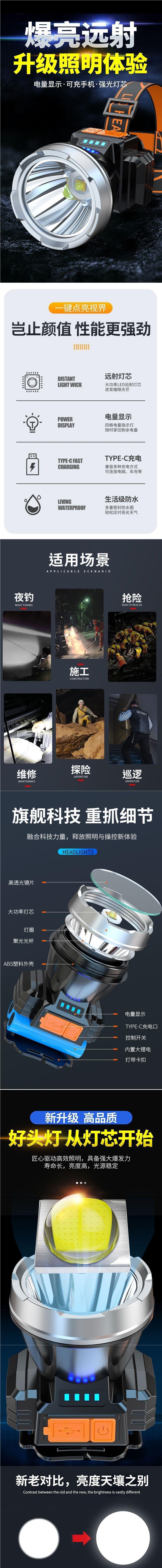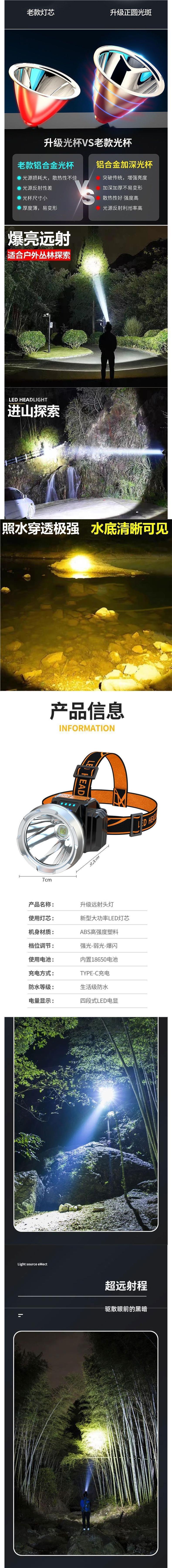 LED頭燈強光充電夜釣魚戶外趕海手電筒超亮遠射頭戴式黃光礦燈