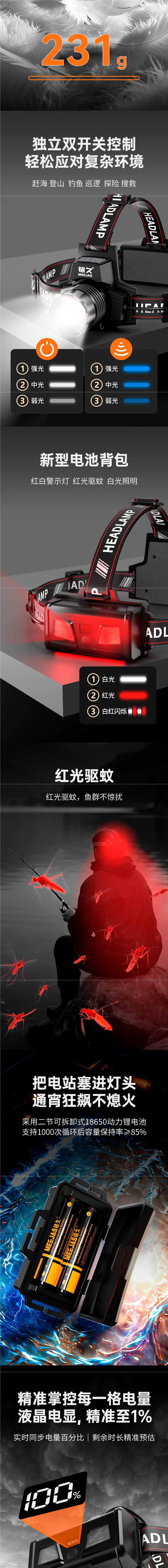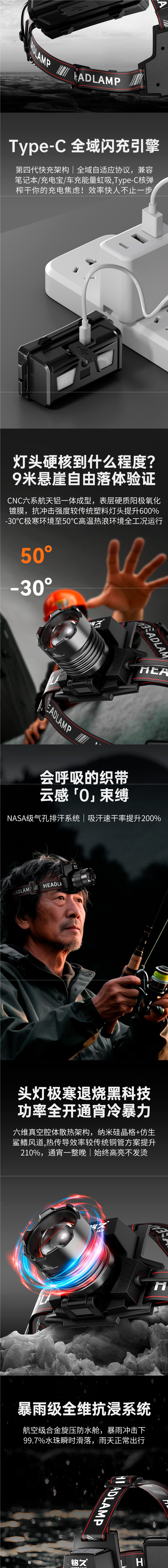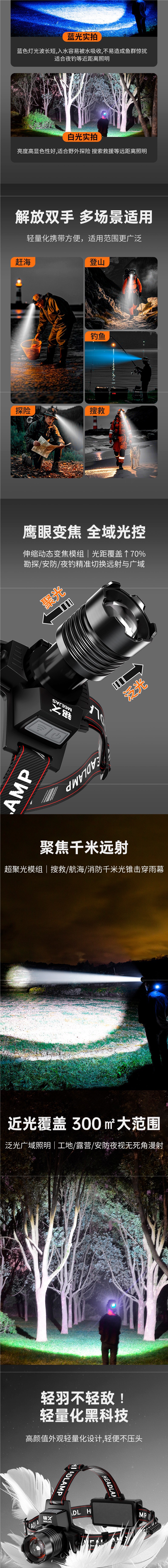 新款大功率頭燈強光超亮夜釣釣魚專用戶外登山頭戴式超長續航