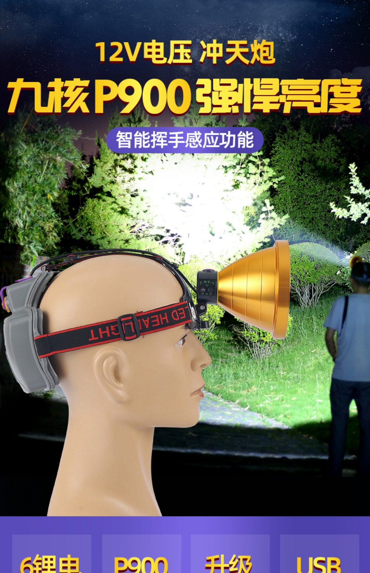 #16核強光頭燈充電超亮頭戴式照明燈大功率遠射雷射砲趕海超長續