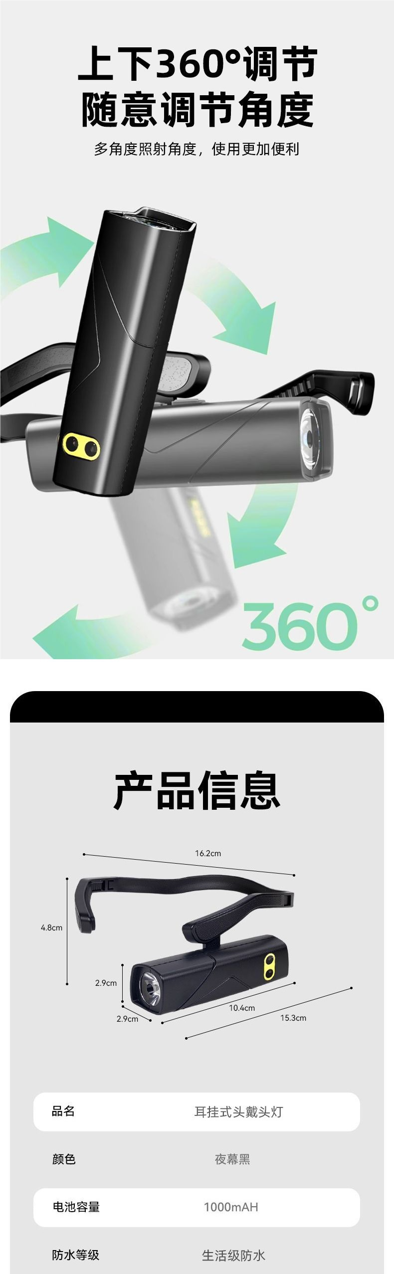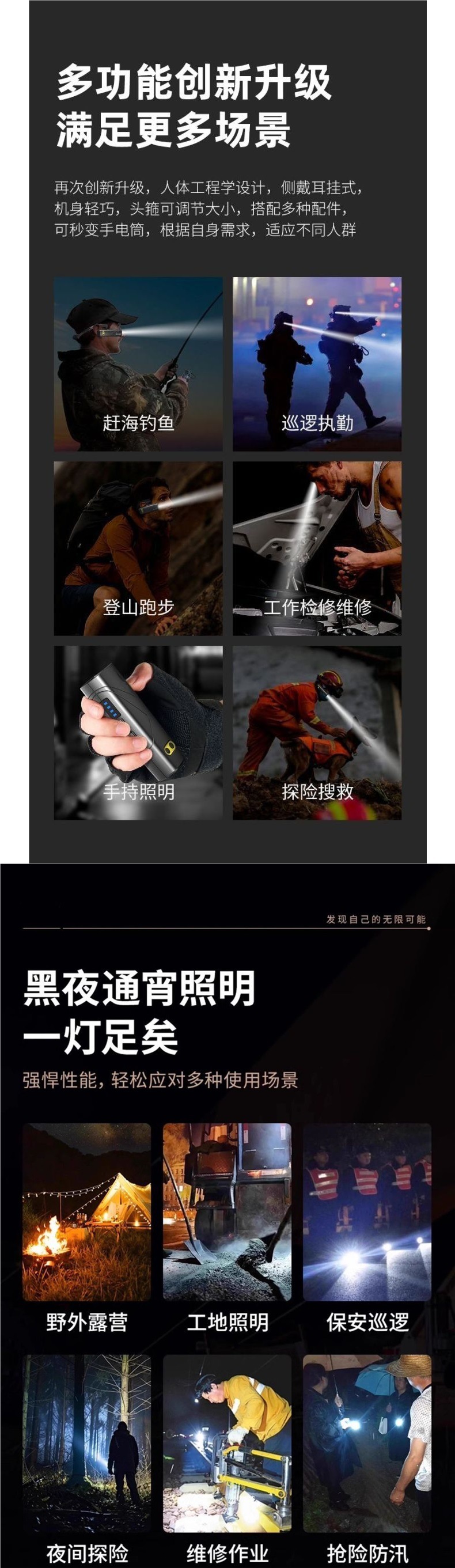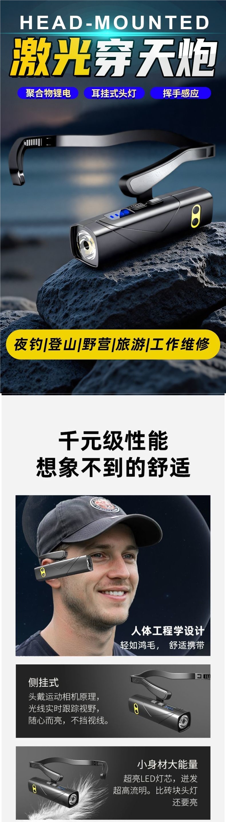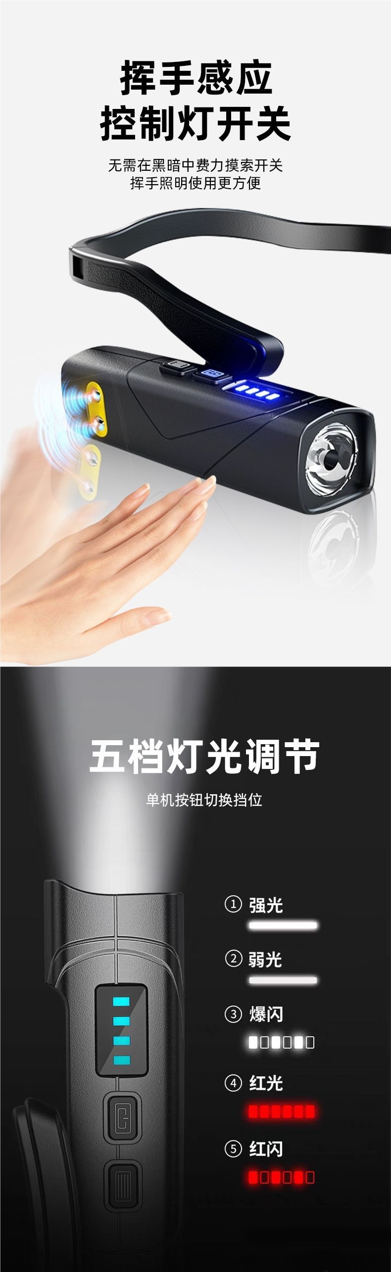 | 顔色 | 側掛耳式頭燈【5檔調光+揮手感應+超級快充】-加強標準款【3220M普亮+待12時】 |