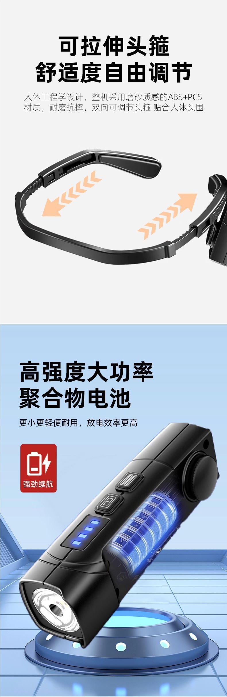2025新款頭燈強光超亮充電戶外登山夜釣魚專用續航超長感應頭戴式