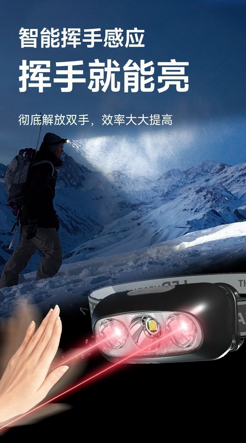 頭燈超亮可充電頭戴式強光感應特亮手電筒小型可攜式夜釣魚燈