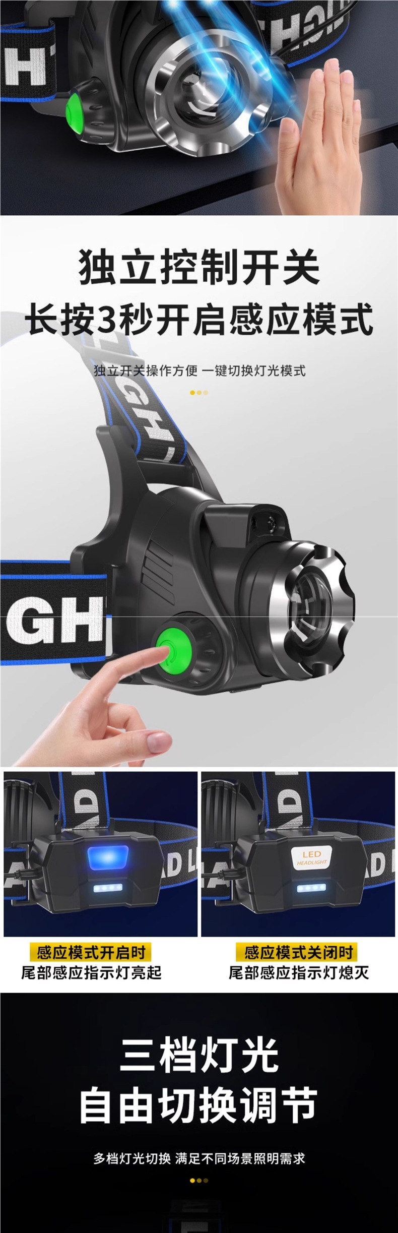頭燈強光充電超亮超長續航釣魚頭戴式照明感應夜釣手電筒戶外強光