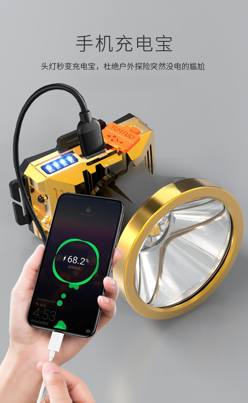 戶外遠射礦燈夜釣燈可充電LED頭燈強光頭戴式家用手電筒超亮防水