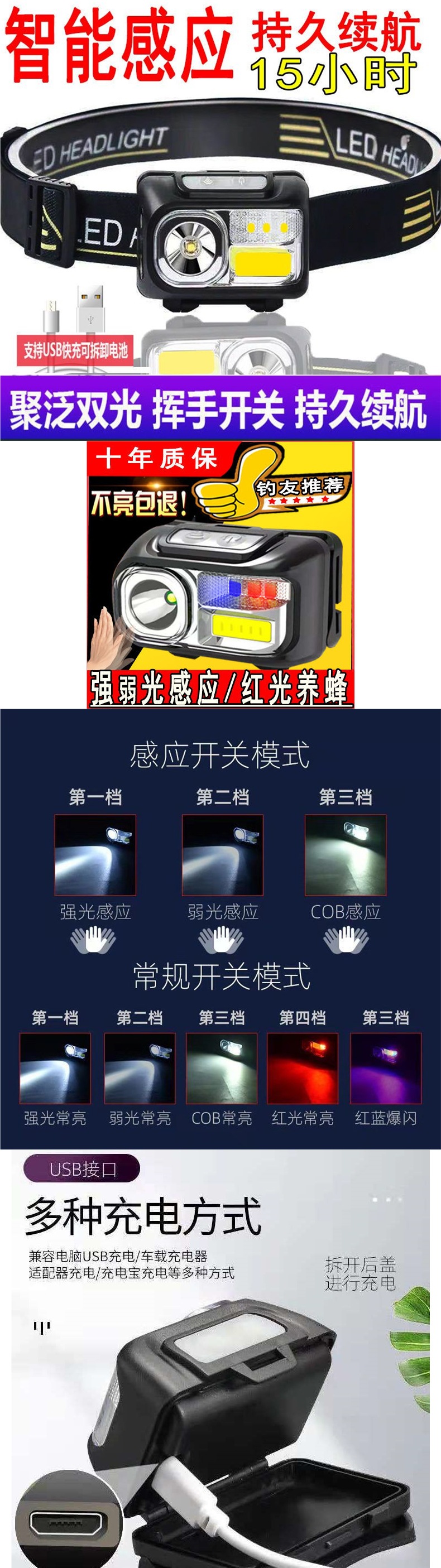 LED感應頭燈強光遠射釣魚燈夜釣專用照明燈超亮野外戶外頭戴