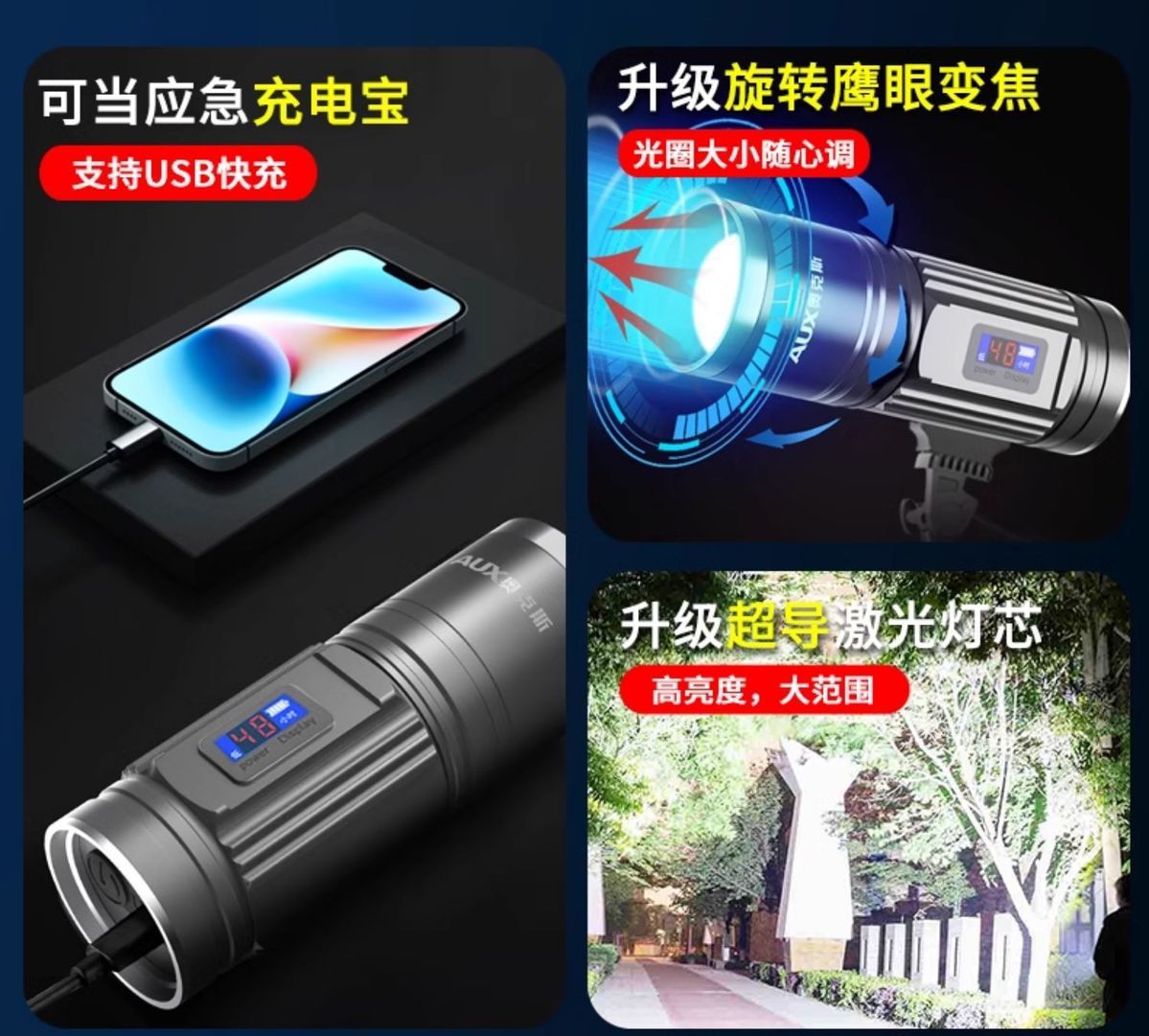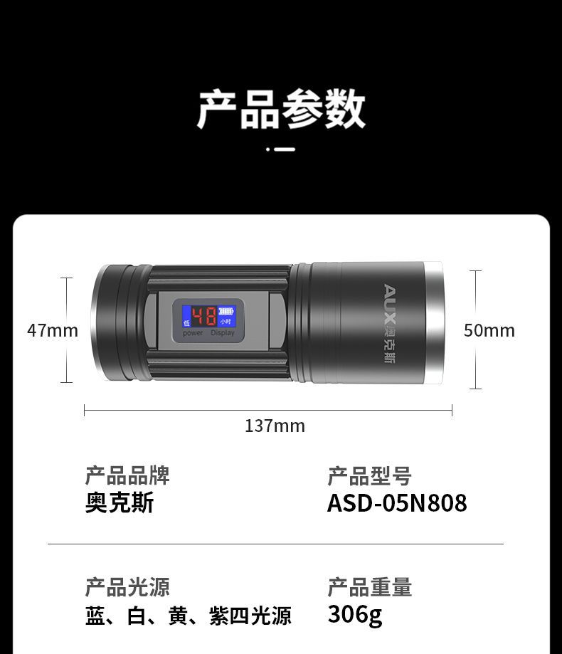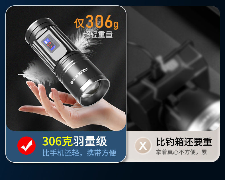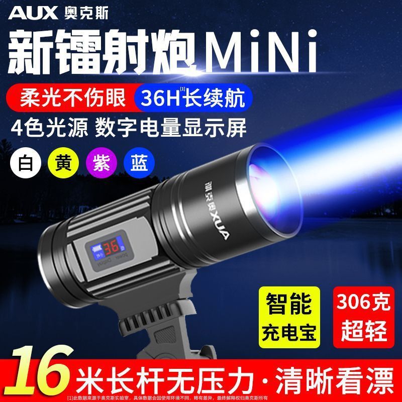 奧克斯夜釣燈釣魚燈強光超亮雷射大功率野釣砲紫光燈小手電筒