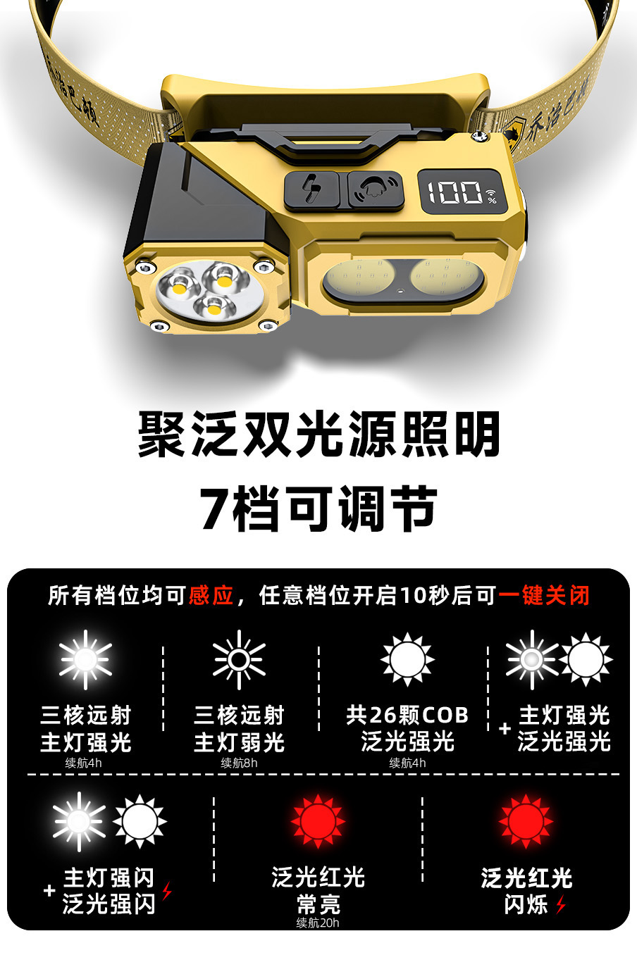 頭燈釣魚專用強光感應夜釣登山夜跑超亮防水充電頭戴式迷你手電筒