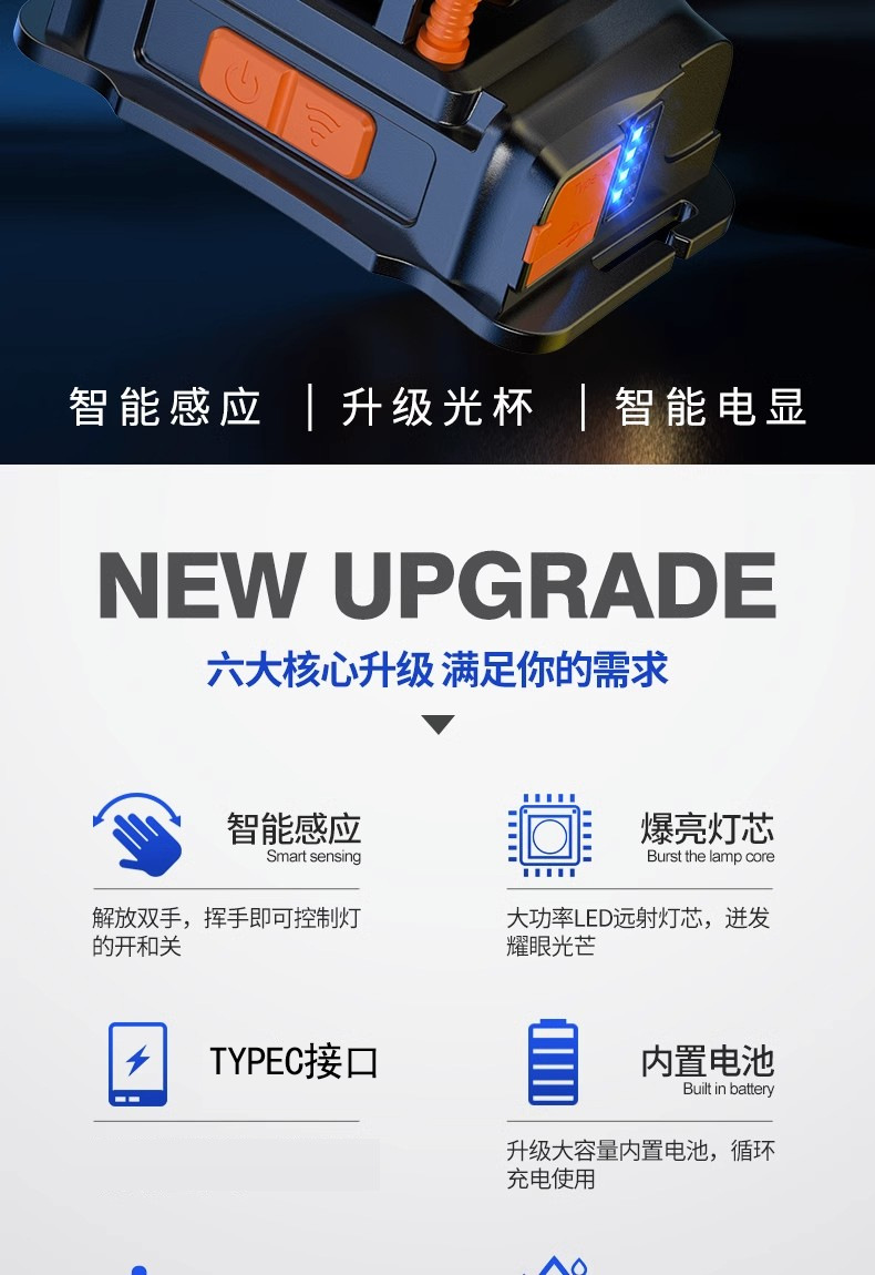 圖邇頭燈強光充電超亮感應頭戴式照明手電筒新款夜釣魚長續航礦燈