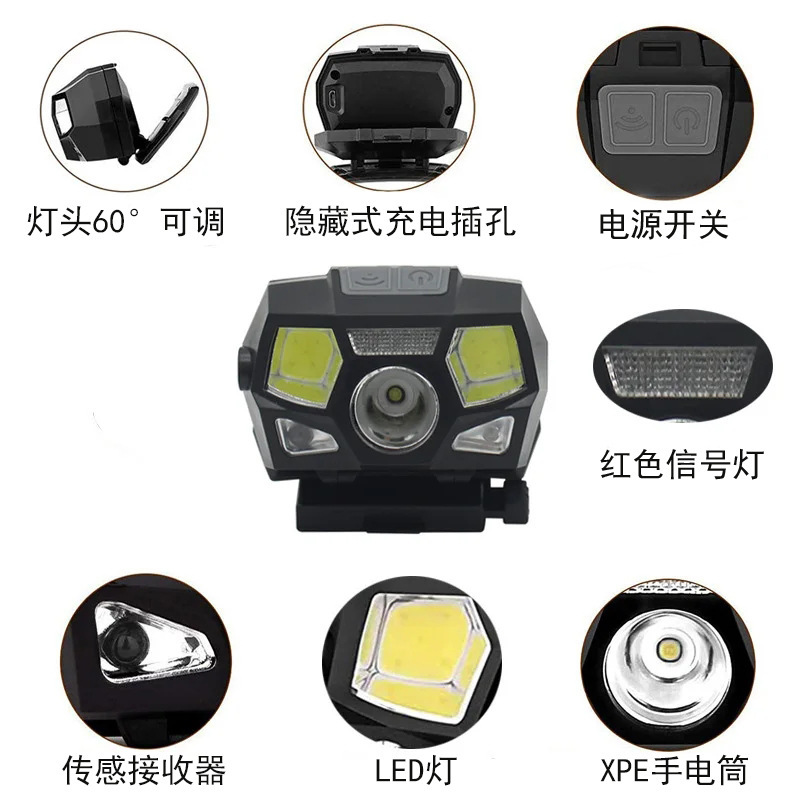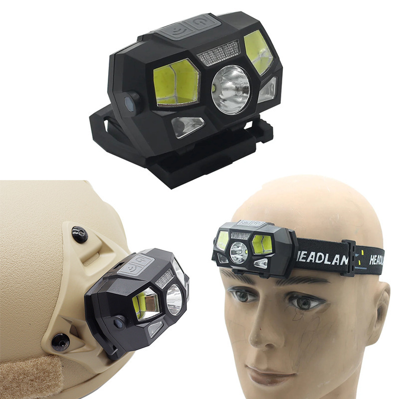 戰術頭盔燈USB充電感應頭燈防水信號燈釣魚頭燈求生救援頭燈