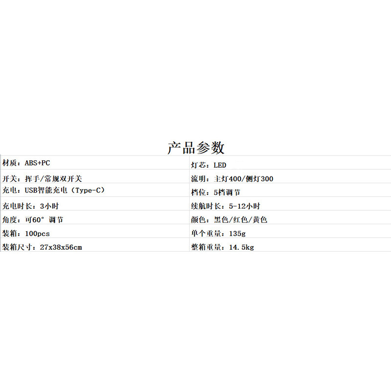 | 規格 | USB頭燈 |