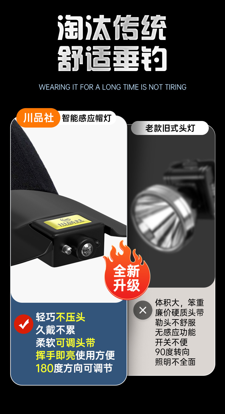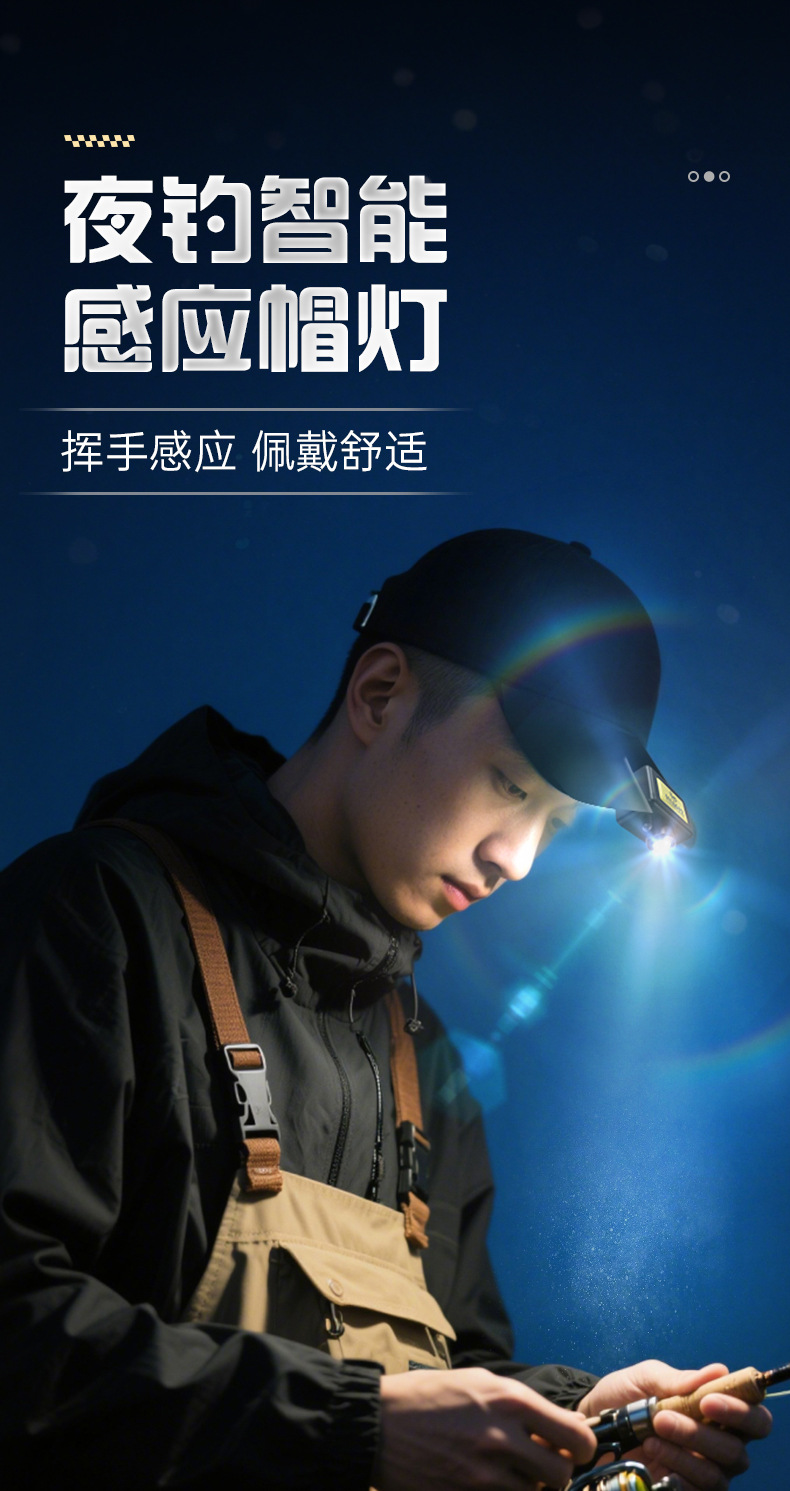 燈帽一體釣魚帽帶燈超長續航超亮夜釣自動感應燈釣魚用頭燈帽子
