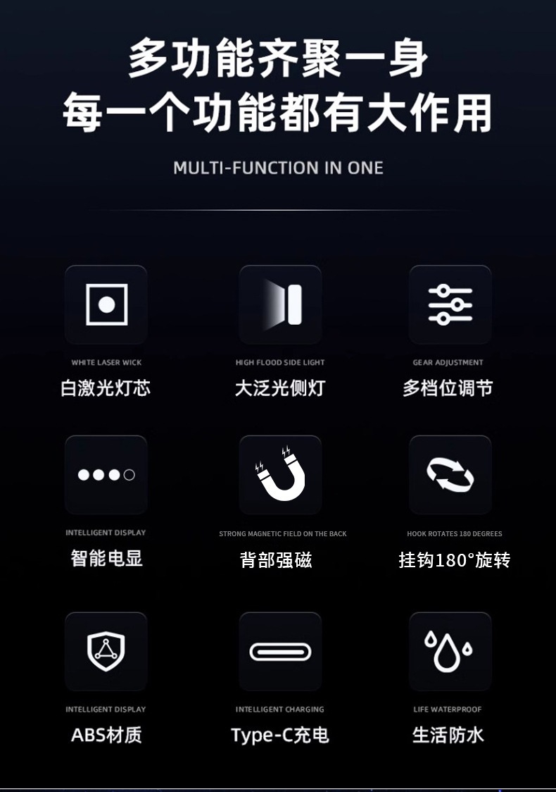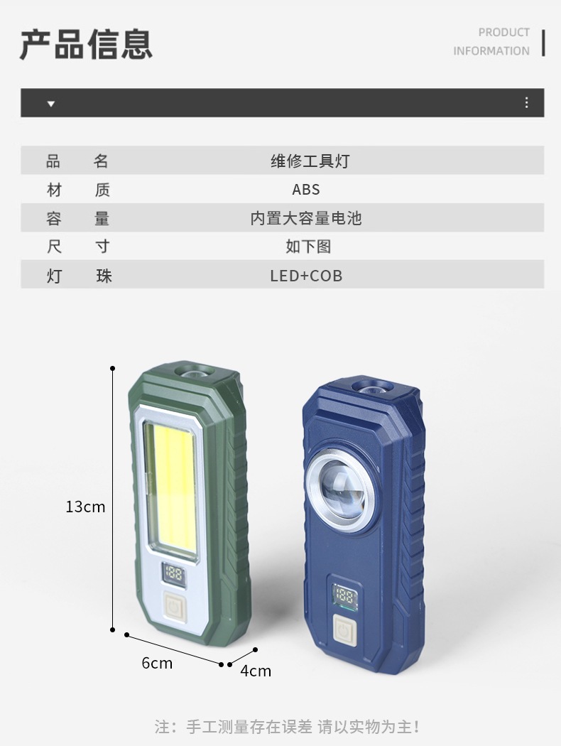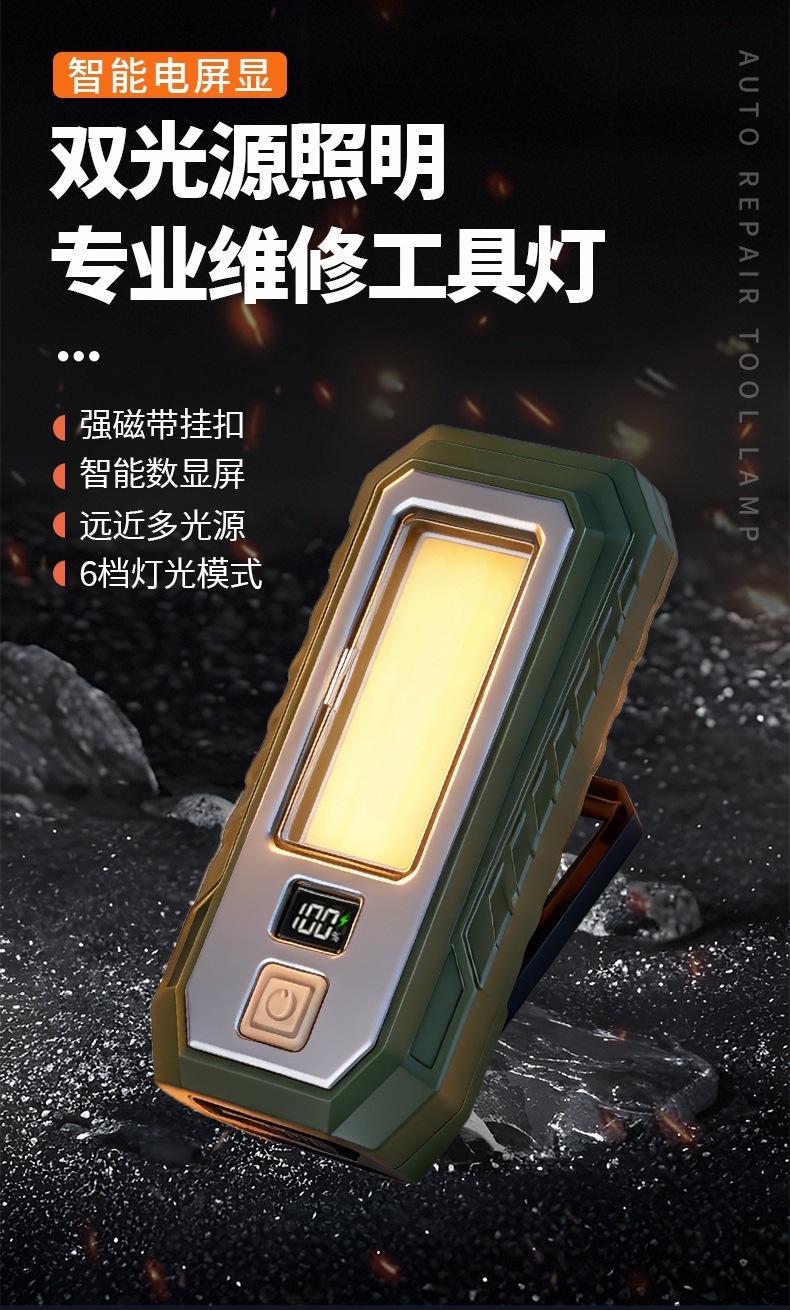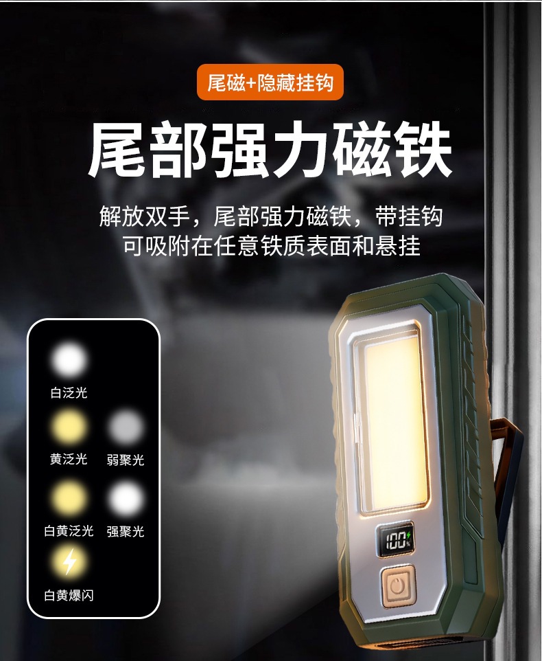 新款戶外照明可充電磁吸修車超亮led工作燈汽修燈手電筒數字電顯