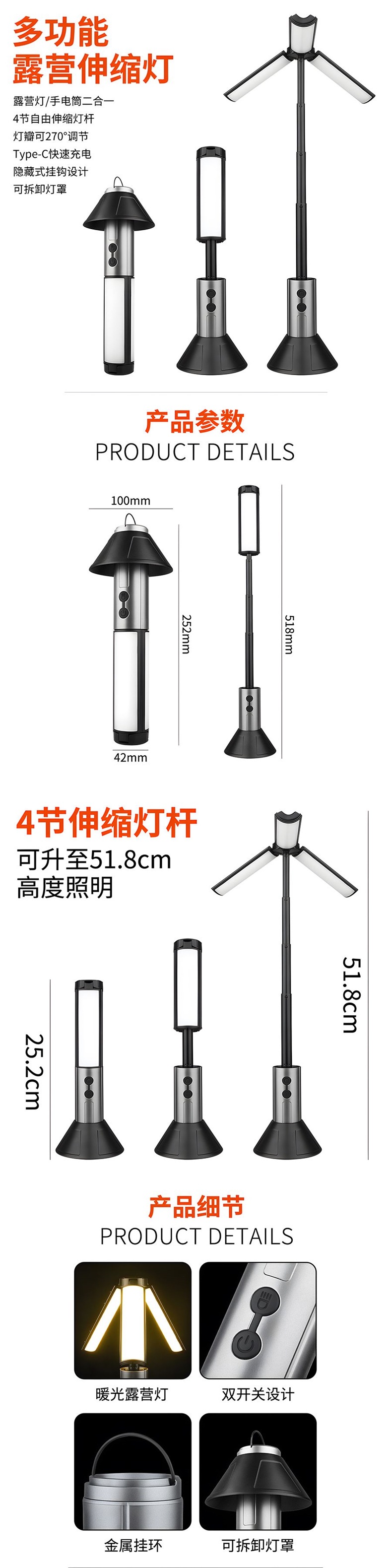 | 顔色 | 多功能伸縮露營燈 |
