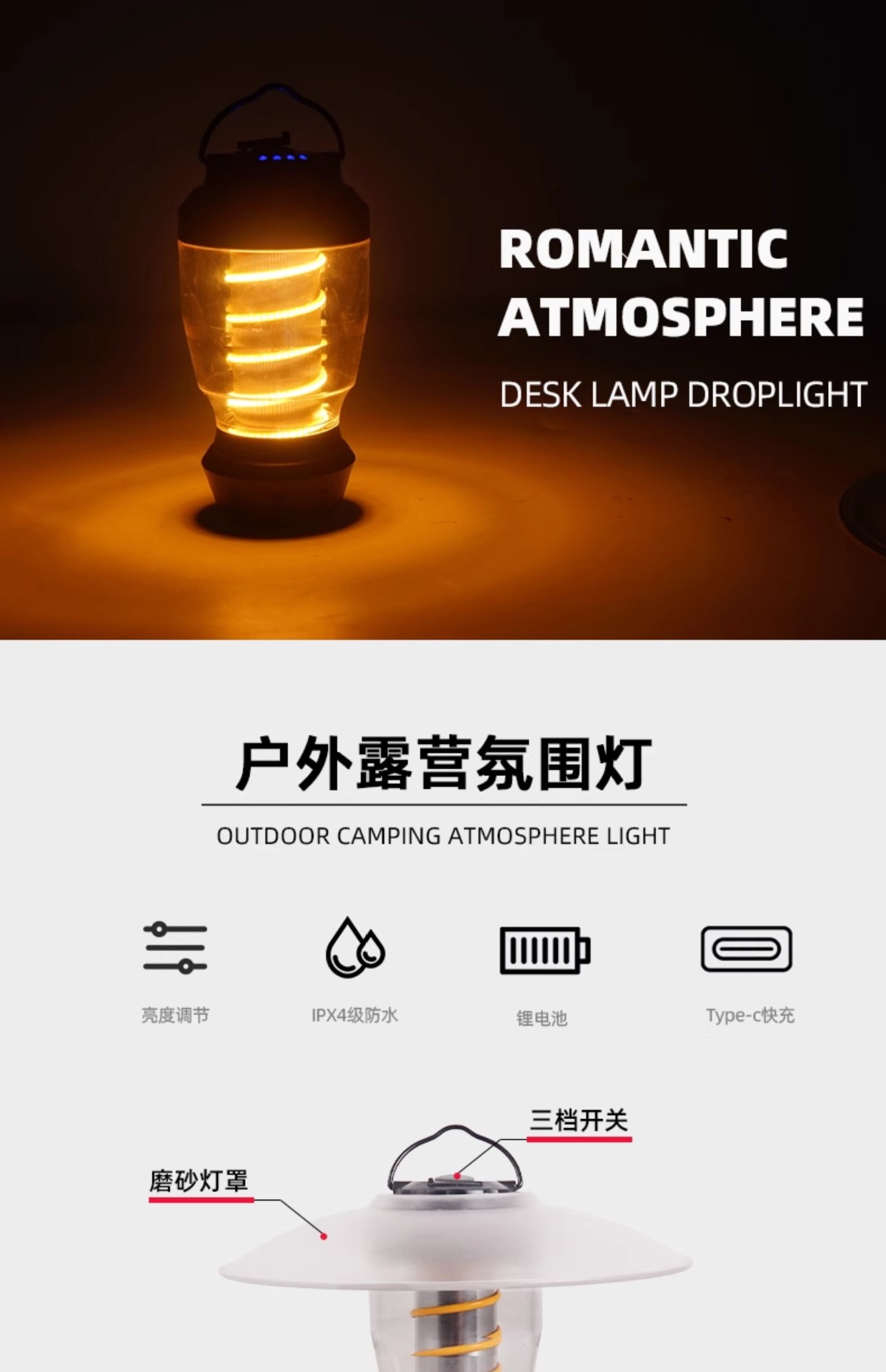 露營燈戶外可攜式小夜燈帳篷天幕照明燈塔氛圍燈應急手電營地燈
