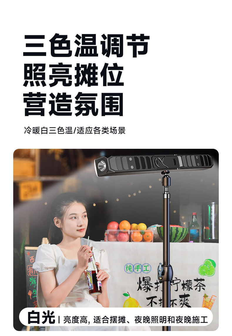 新款露營燈停電應急燈LED燈充電式移動三色調光強光支架夜市擺攤