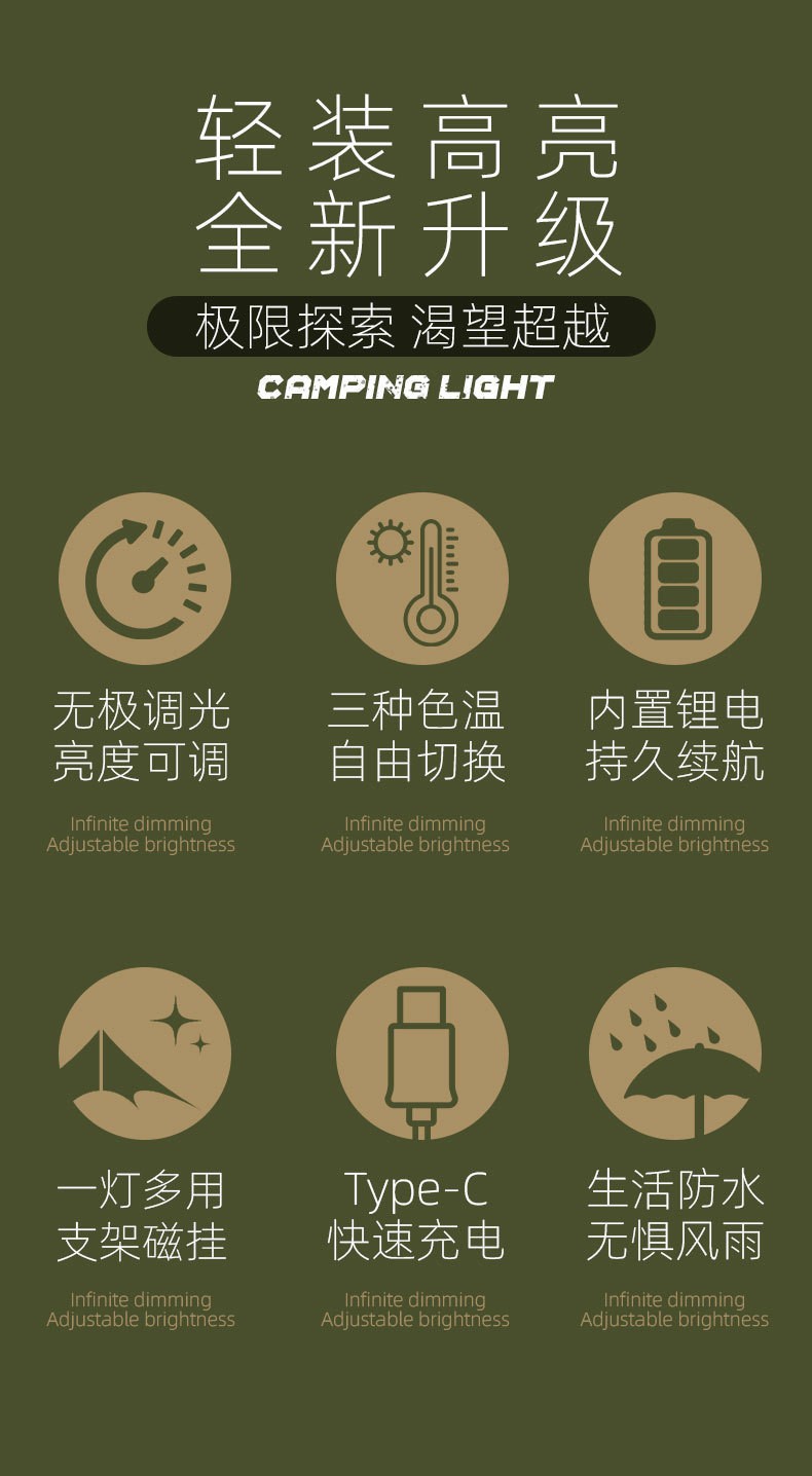 戶外露營燈可攜式營地帳篷野營工作燈氛圍掛燈長續航充電照明燈