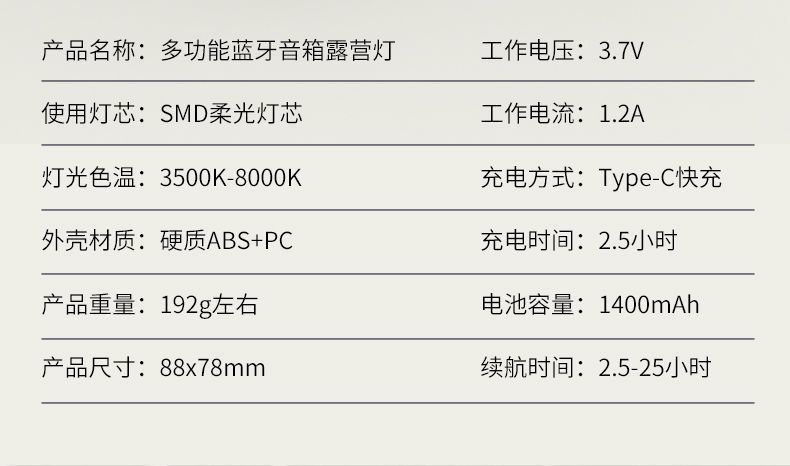 | 顔色 | 【經典黑-藍牙音響露營燈】+鋁合金折曡燈架 |