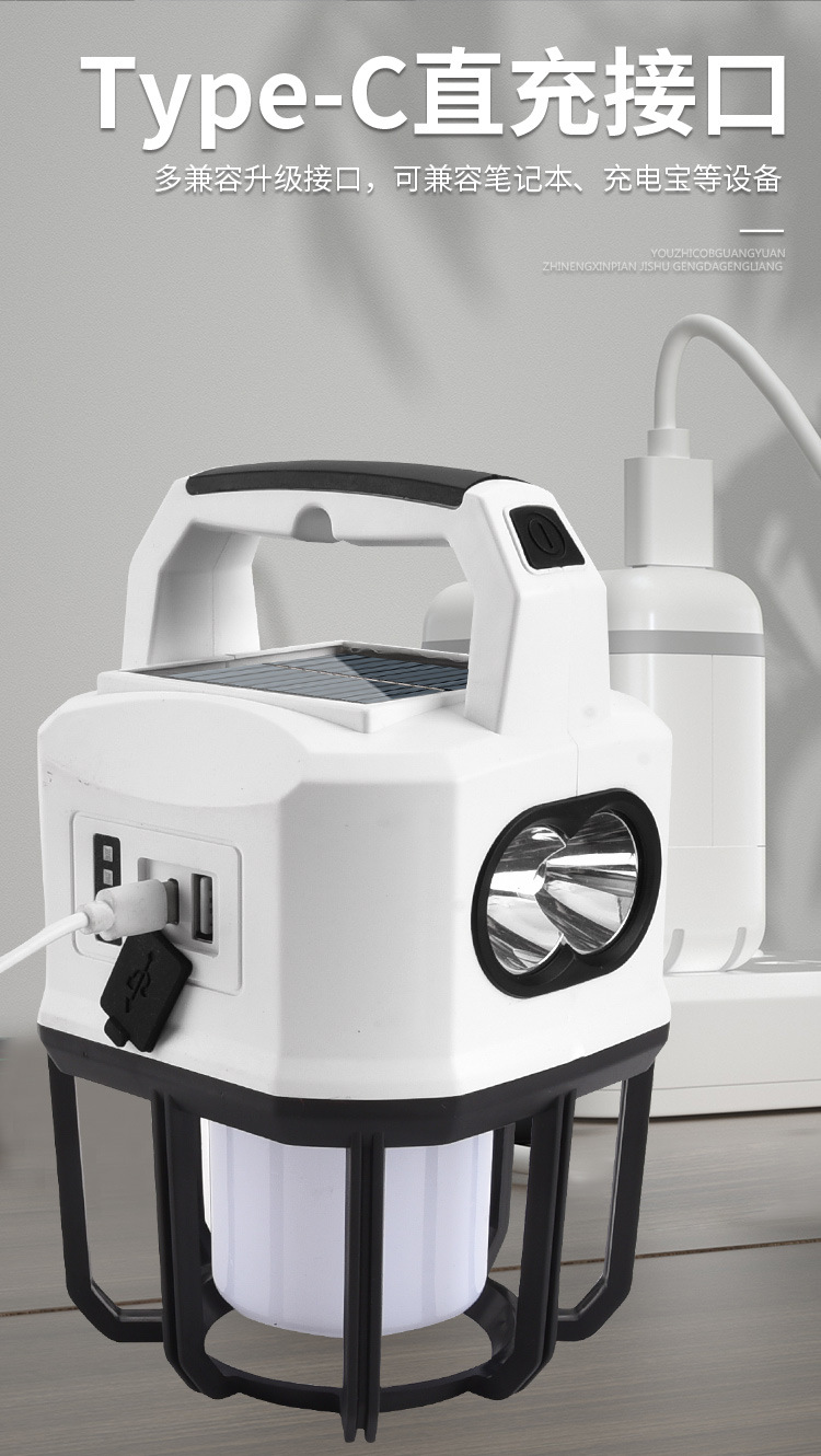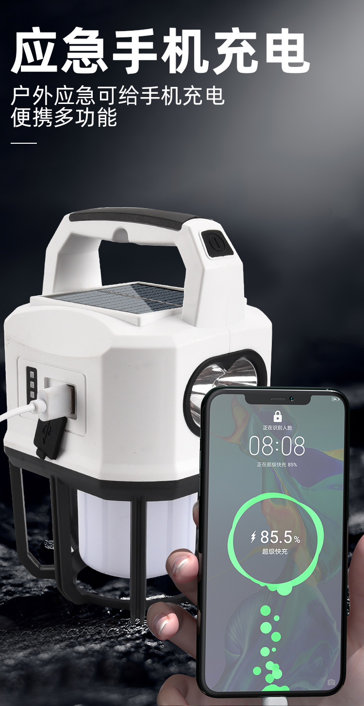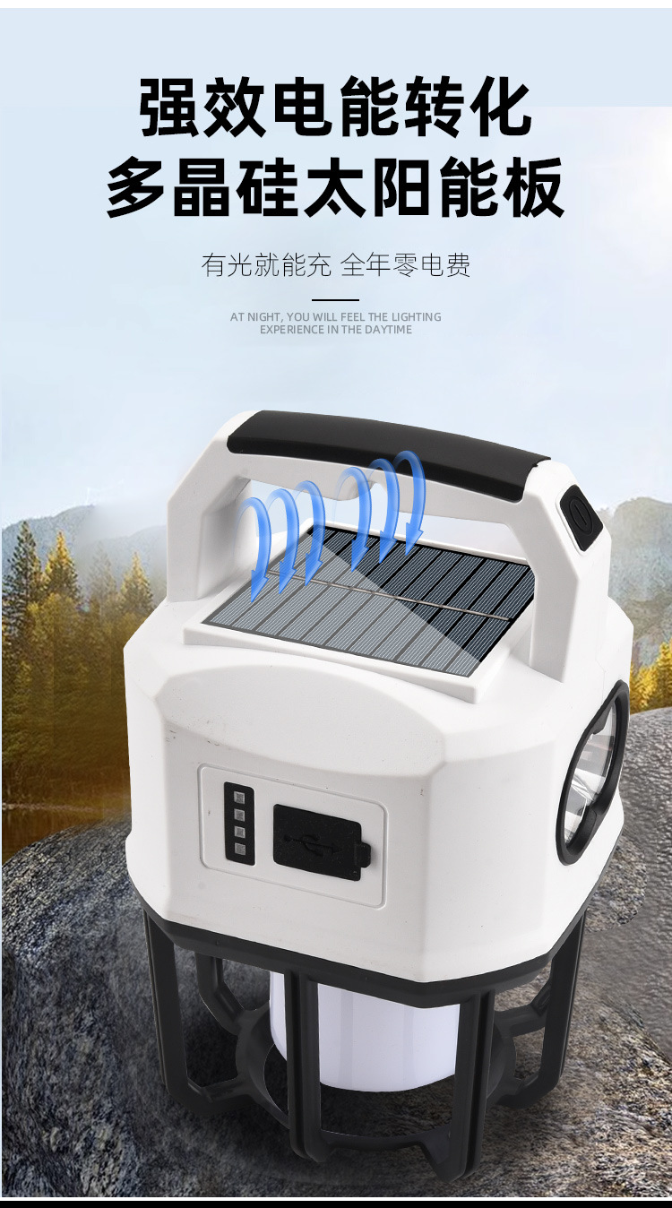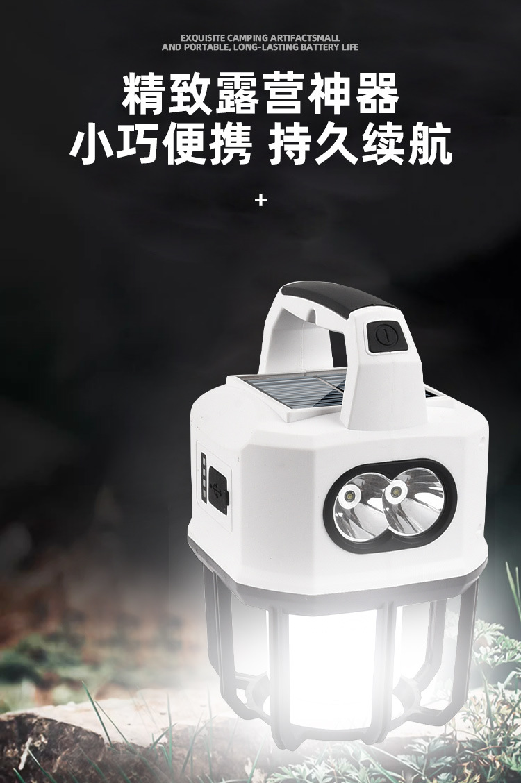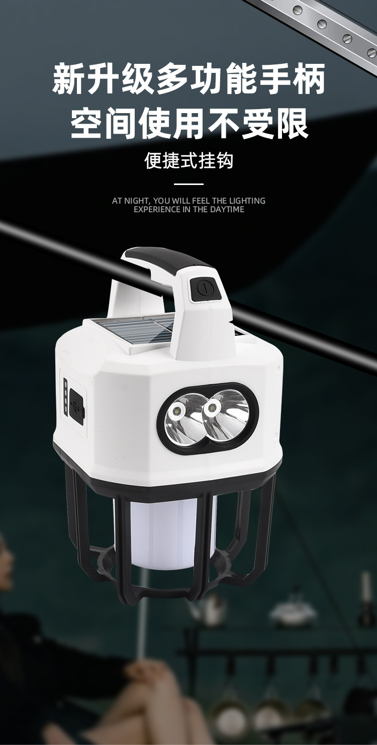 新款太陽能戶外露營燈usb充電雙光源戶外探照燈地攤燈夜市燈