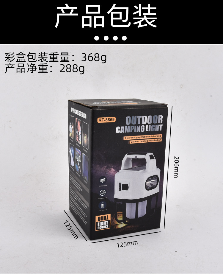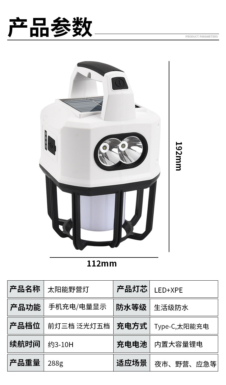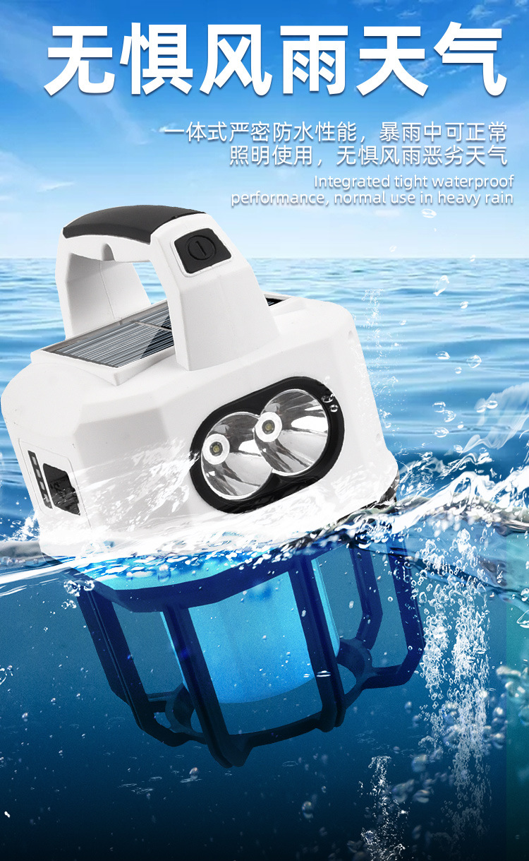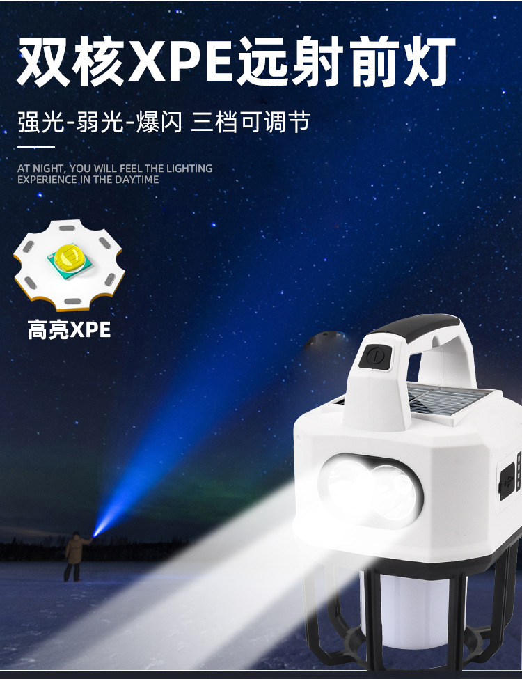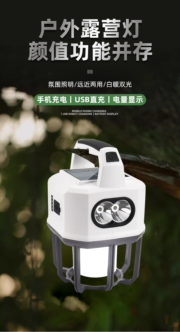 新款太陽能戶外露營燈usb充電雙光源戶外探照燈地攤燈夜市燈
