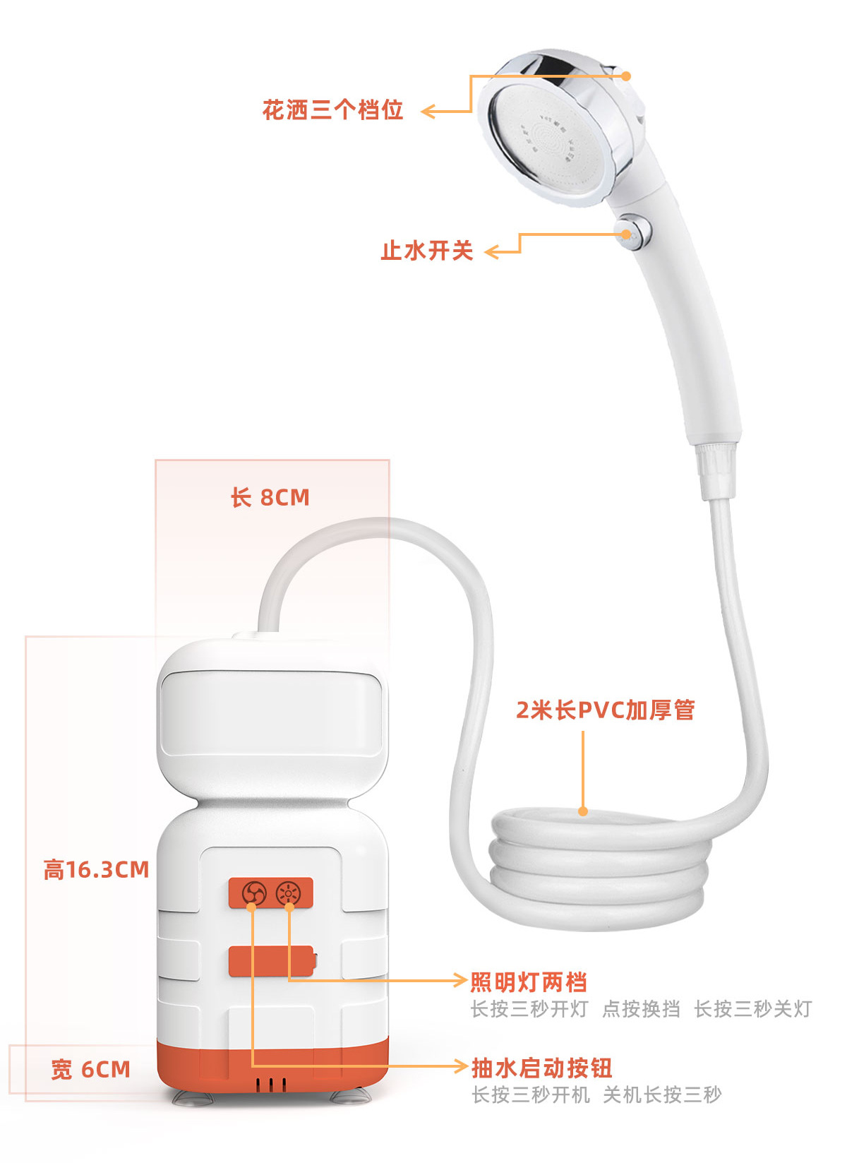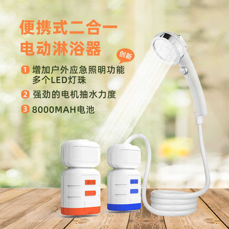 可攜式戶外洗澡神器宿捨野外LED露營燈二合一戶外淋浴器