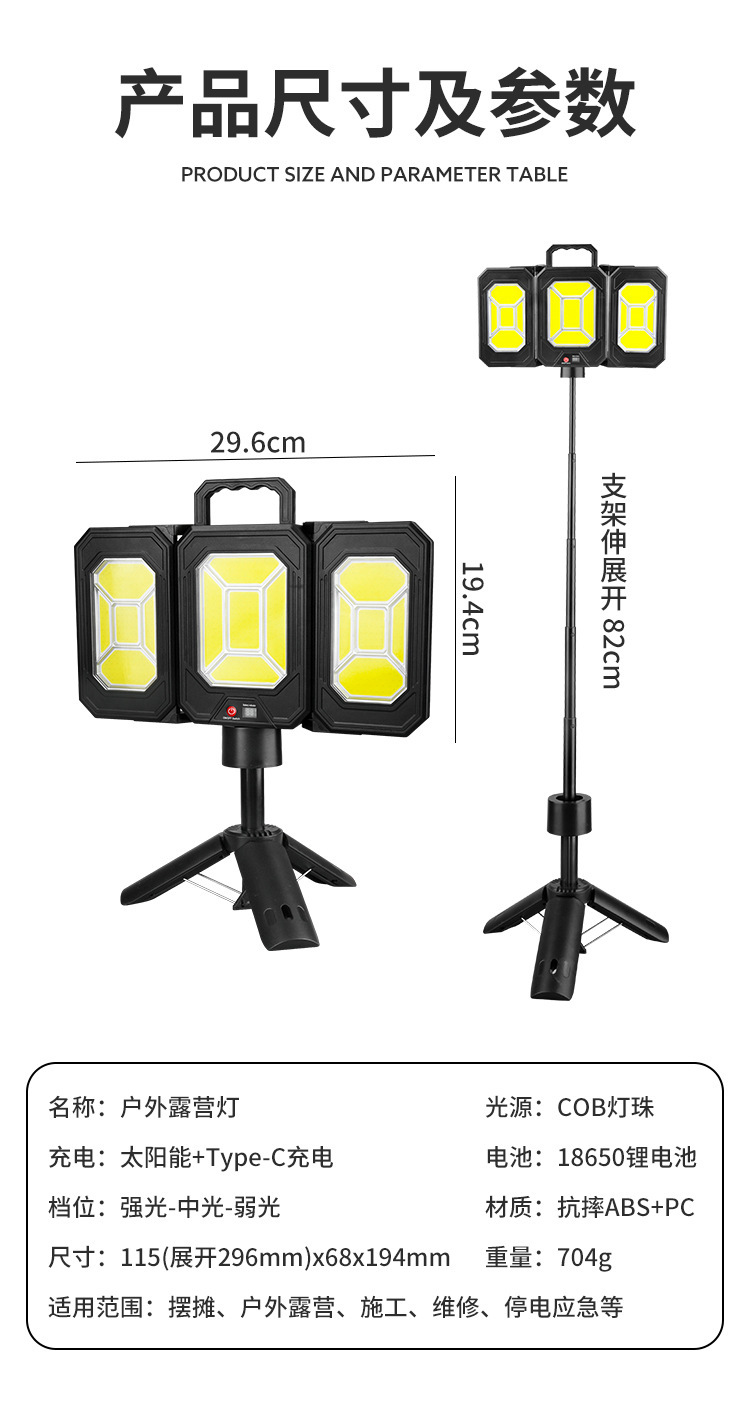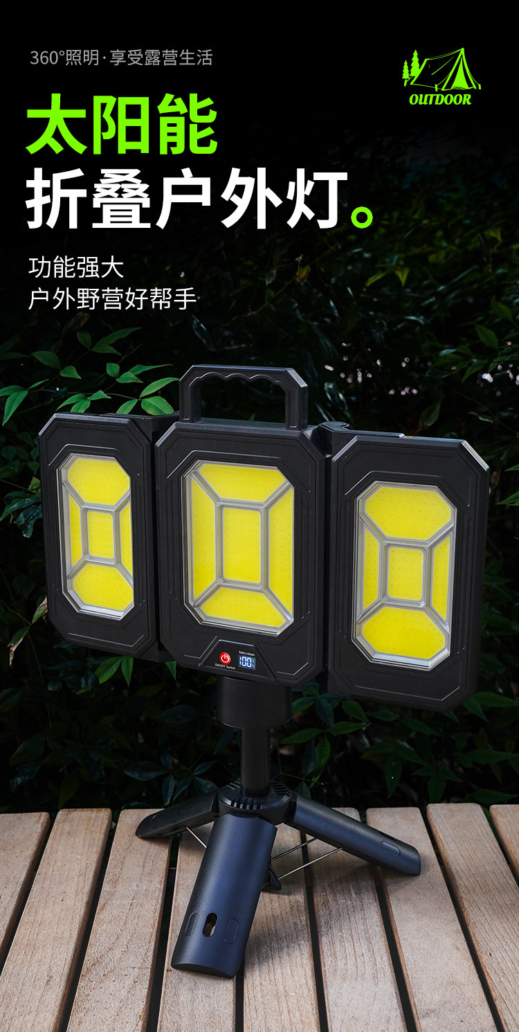 太陽能充電折疊伸縮露營燈帶三角支架高流明數顯長續航營地燈