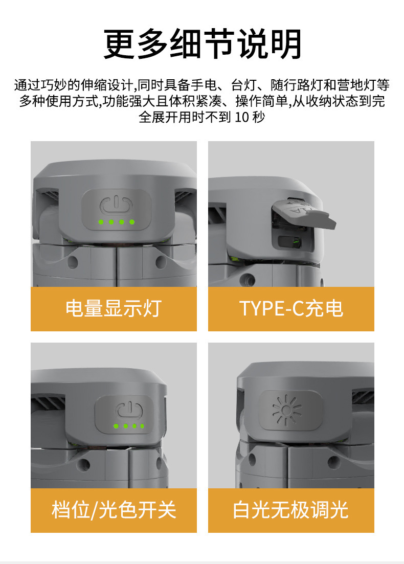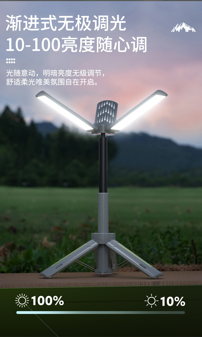 新款折疊LED氛圍燈戶外全場景多功能三葉支架無極調光露營燈