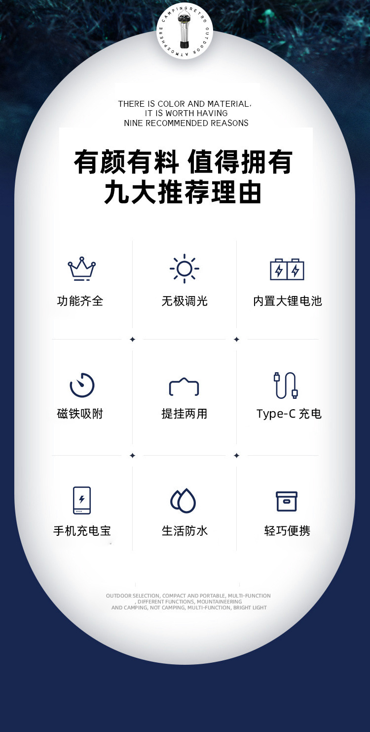 戶外燈塔露營燈野營燈LED多功能營地氛圍燈帳篷燈戶外應急手電筒