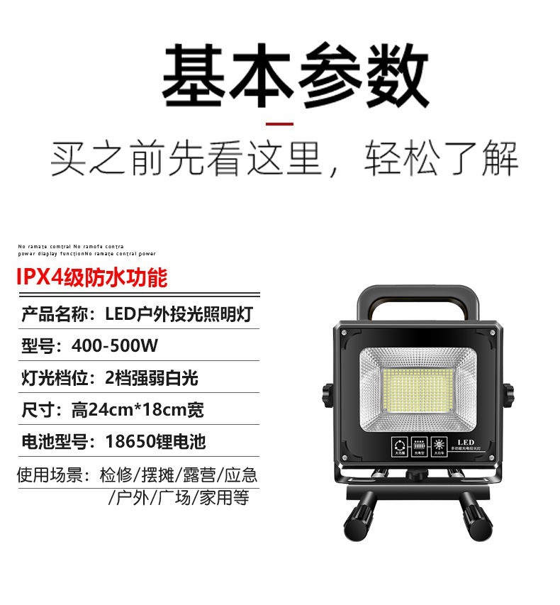 應急充電投光燈強光露營燈夜市停電戶外led工地照明燈