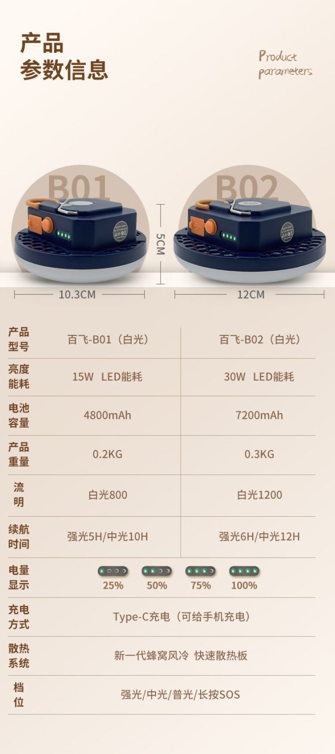 露營燈營地照明燈燈長多功能續航百飛磁吸懸掛天幕B02帳篷燈超亮