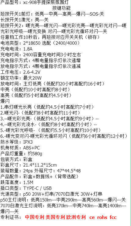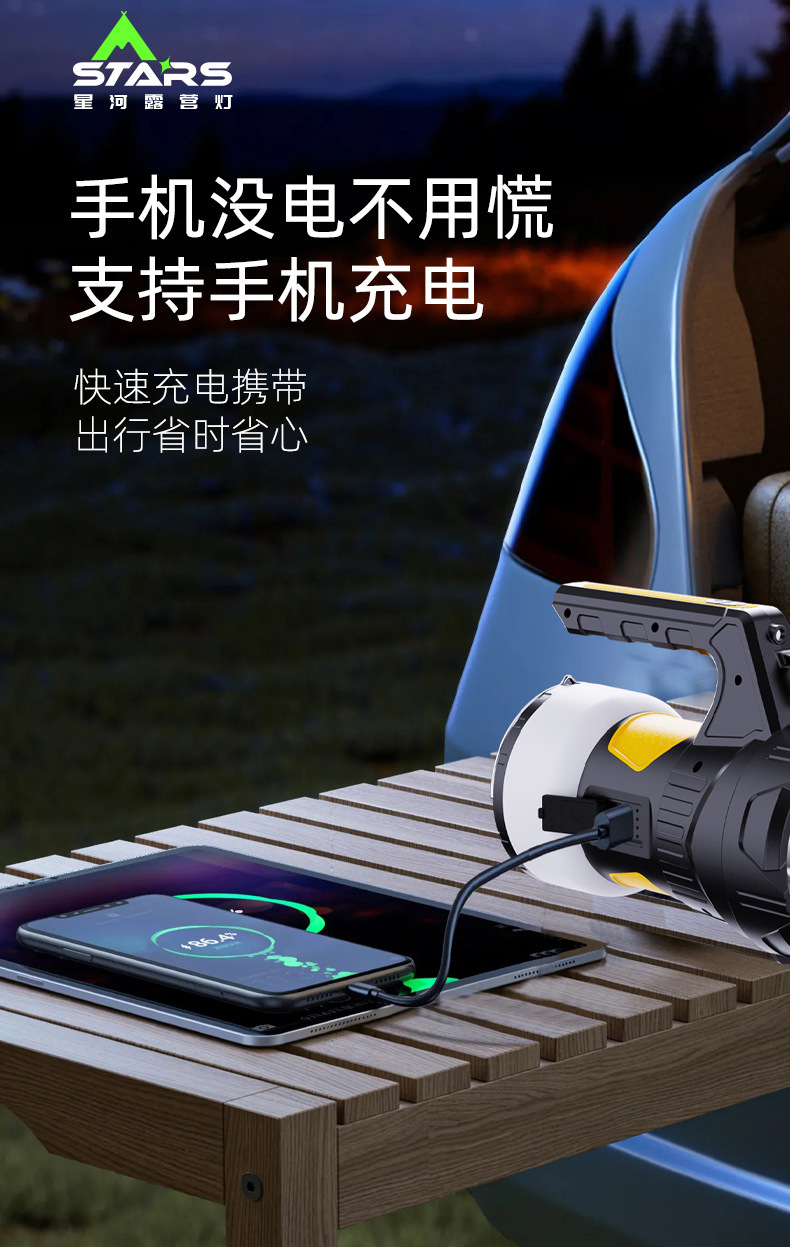 手提燈戶外多功能工作燈強光探照燈超亮長續航露營帳篷掛燈