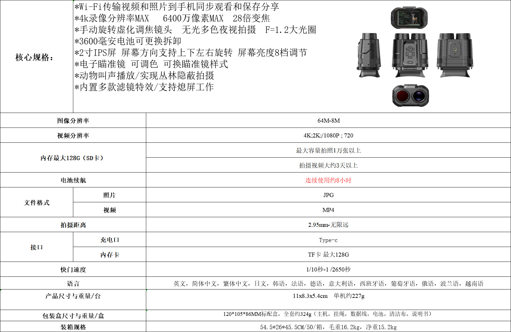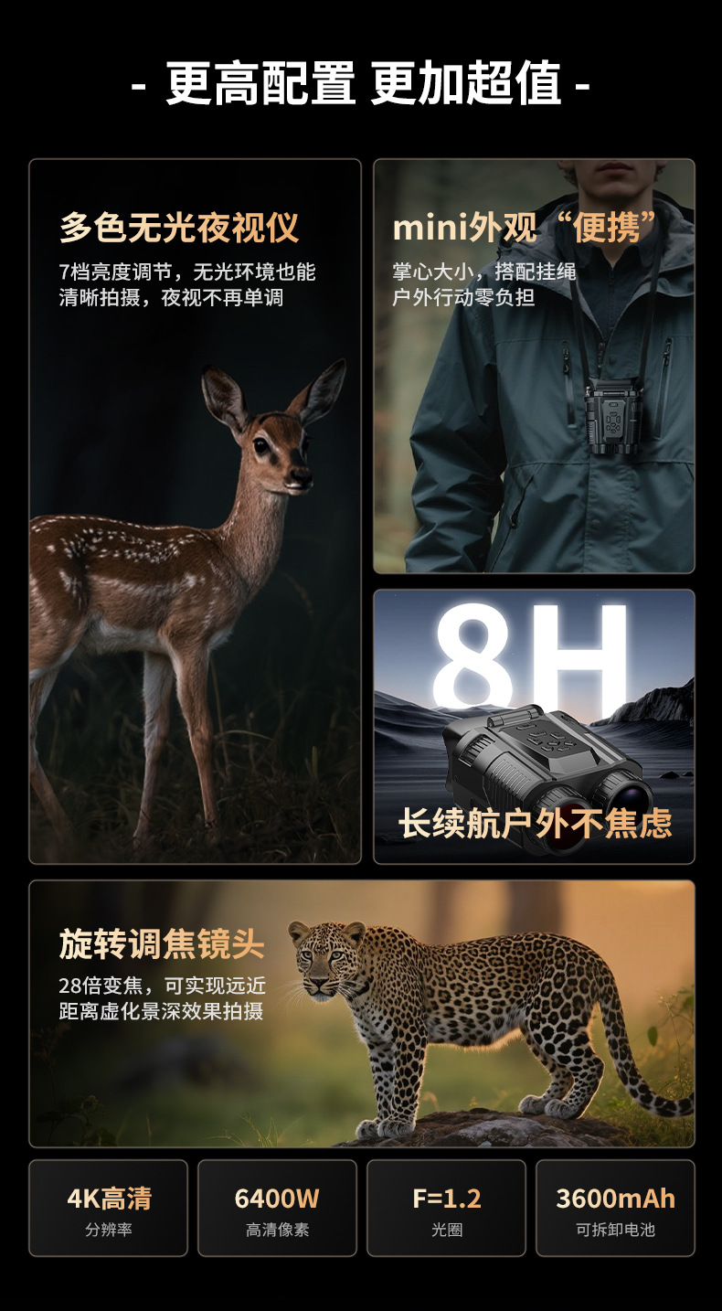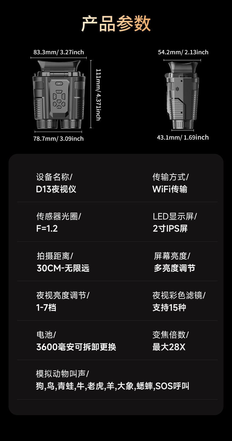 4k高清紅外線WiFi夜視儀D13 迷你無光多彩全黑戶外狩獵錄像望遠鏡