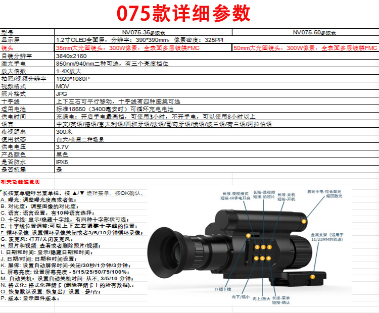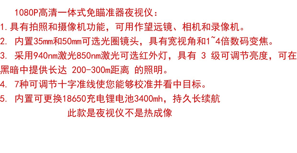 紅外線光學戰術夜視瞄準鏡可調十字鏡夜視儀望遠鏡高清抗震瞄準器