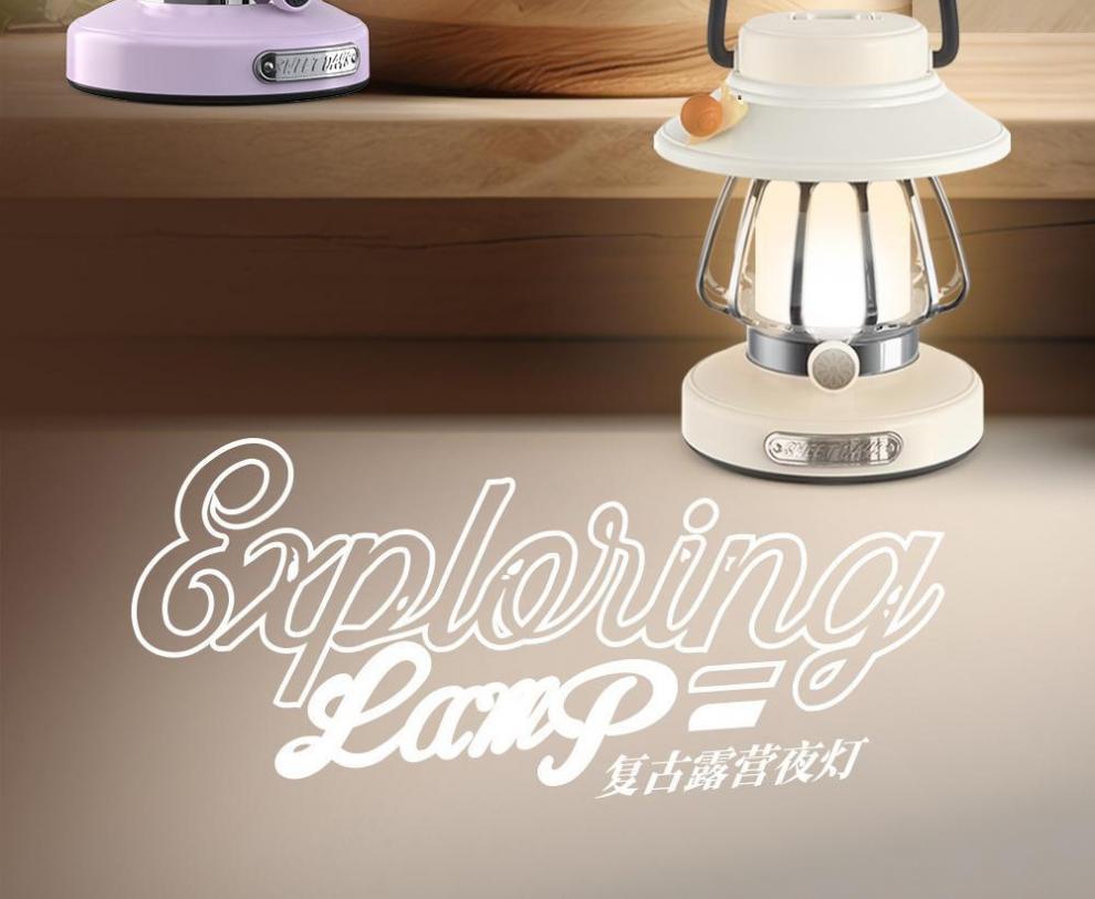 創意復古露營燈三檔位USB充電式LED小夜燈戶外可攜式帶掛鉤野營燈