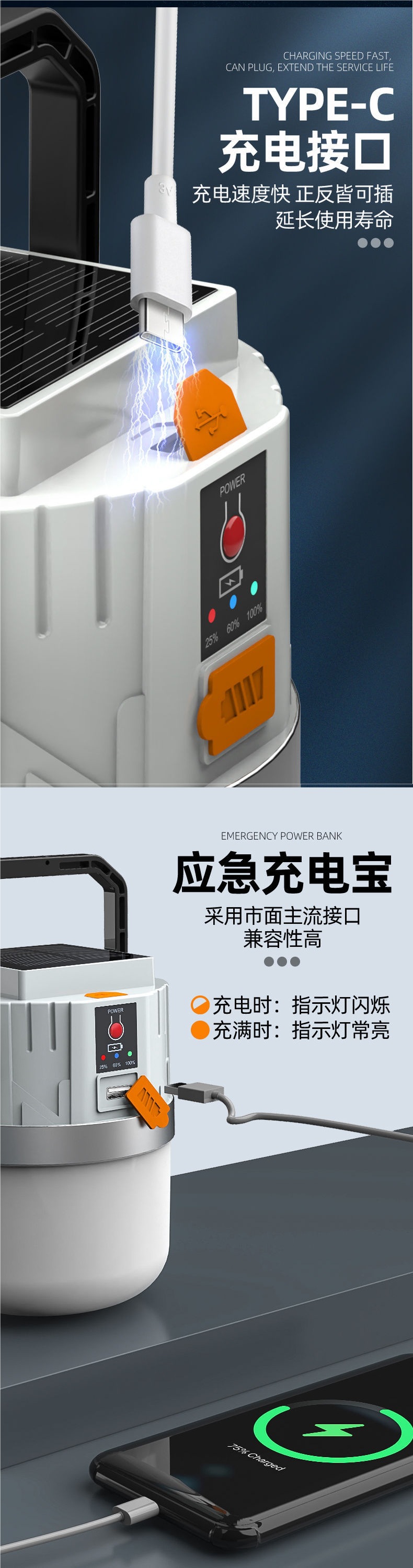 太陽能露營充電戶外超長續航帳篷家用應急燈野營充電式照明燈擺攤