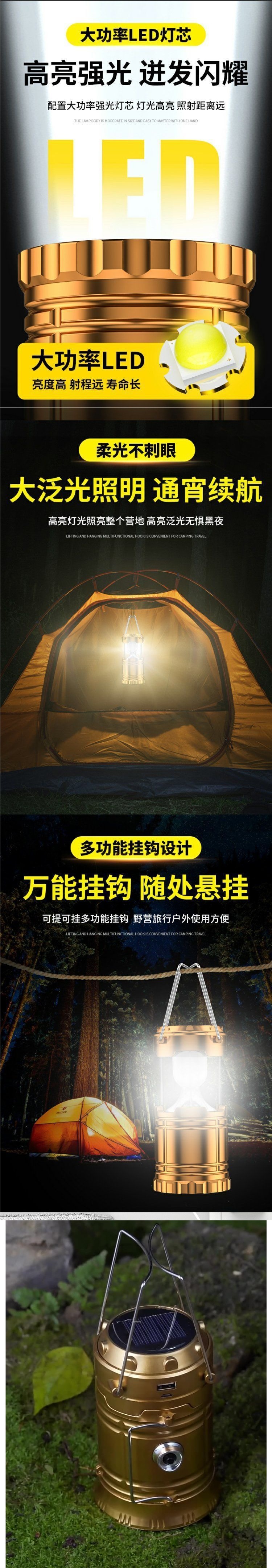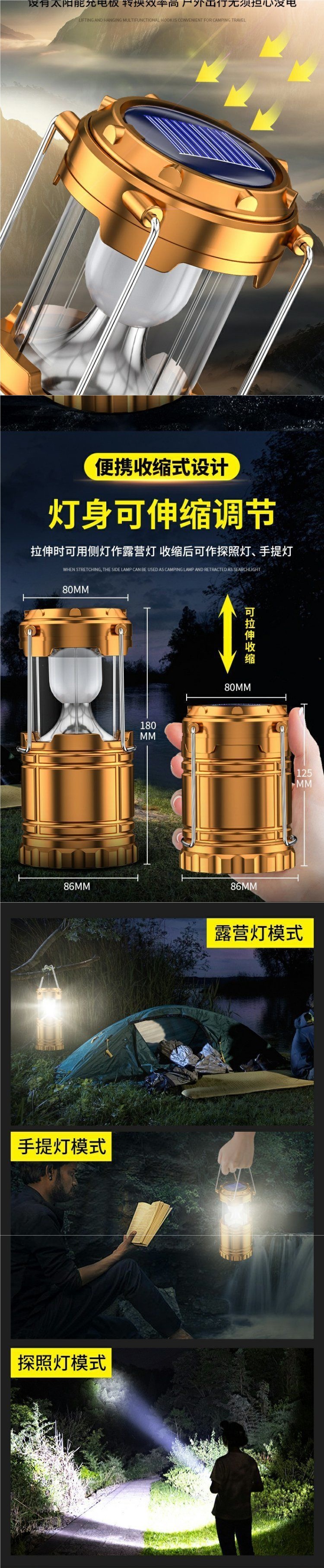 戶外照明燈野營露營燈通用型可攜式旅行帳篷營地拉伸式太陽能馬燈