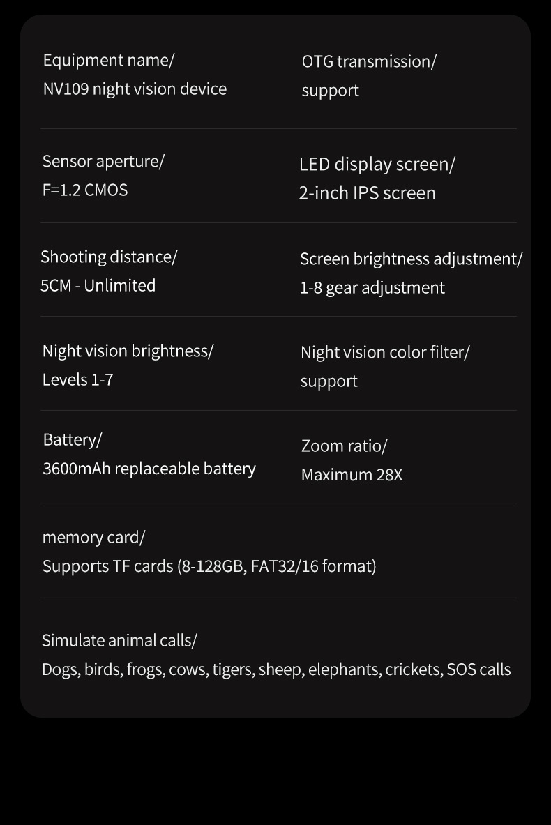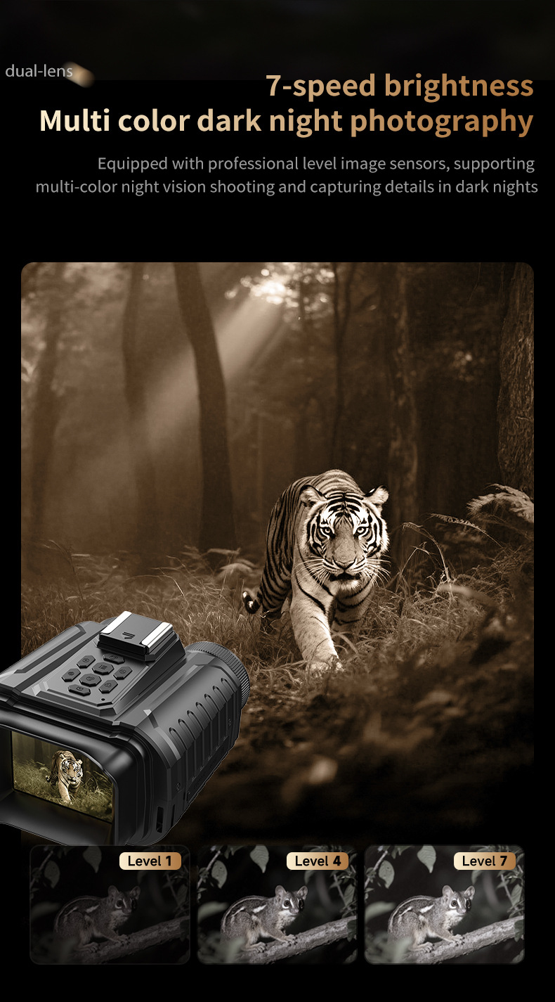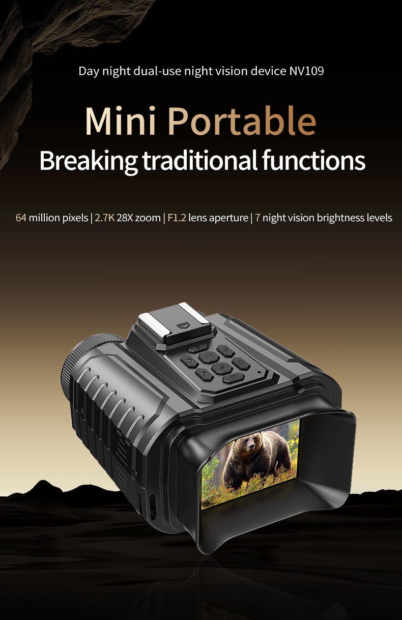 NV109高清2.7K雙鏡頭無光紅外線夜視儀 帶動物音效戶外偵測攝像機