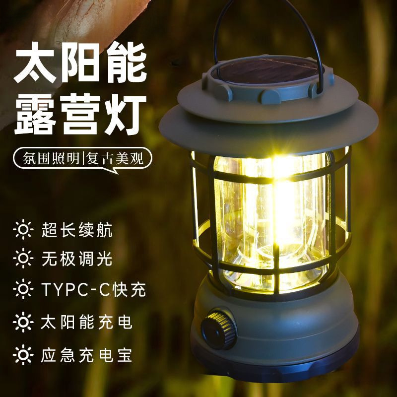 太陽能野營燈戶外LED露營燈應急手提太陽能照明燈多功能充電馬燈