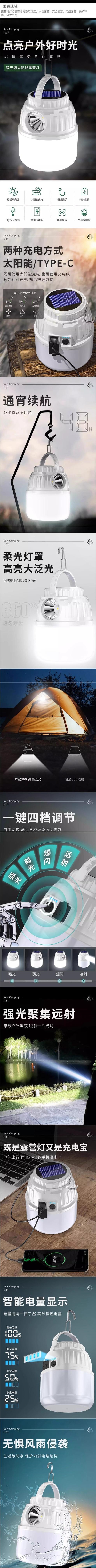 太陽能露營燈夜市擺攤照明停電應急燈充電超長續航戶外帳篷燈掛燈