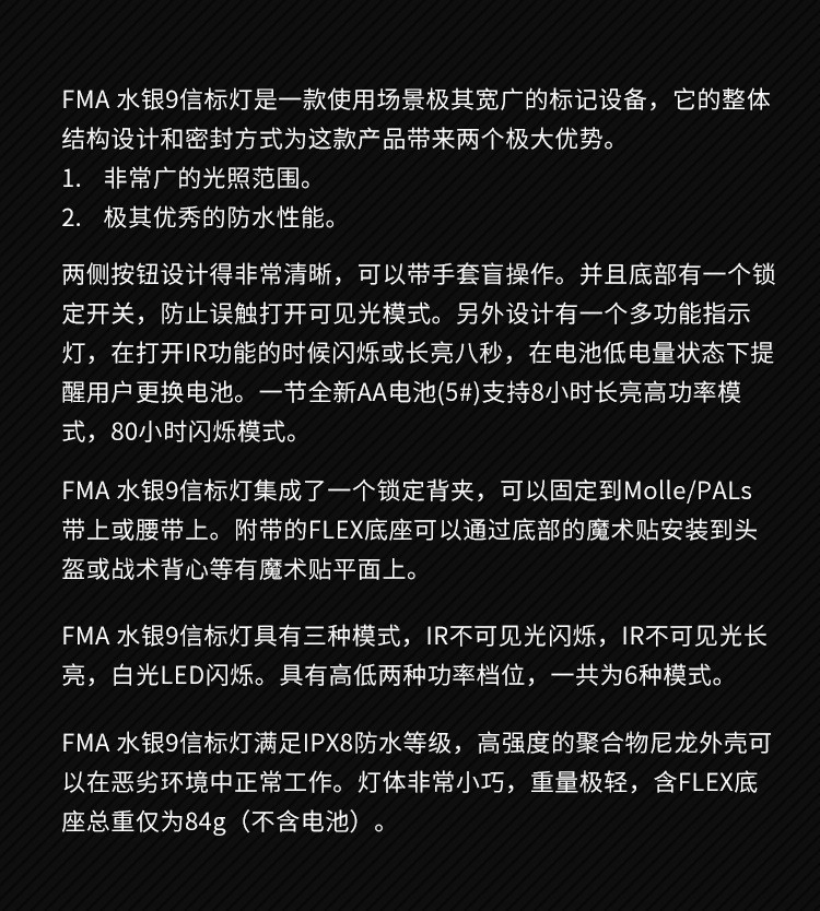 FMA戶外水銀9信標燈 信號燈求生燈閃光長亮標記防水IR功能 TB1473