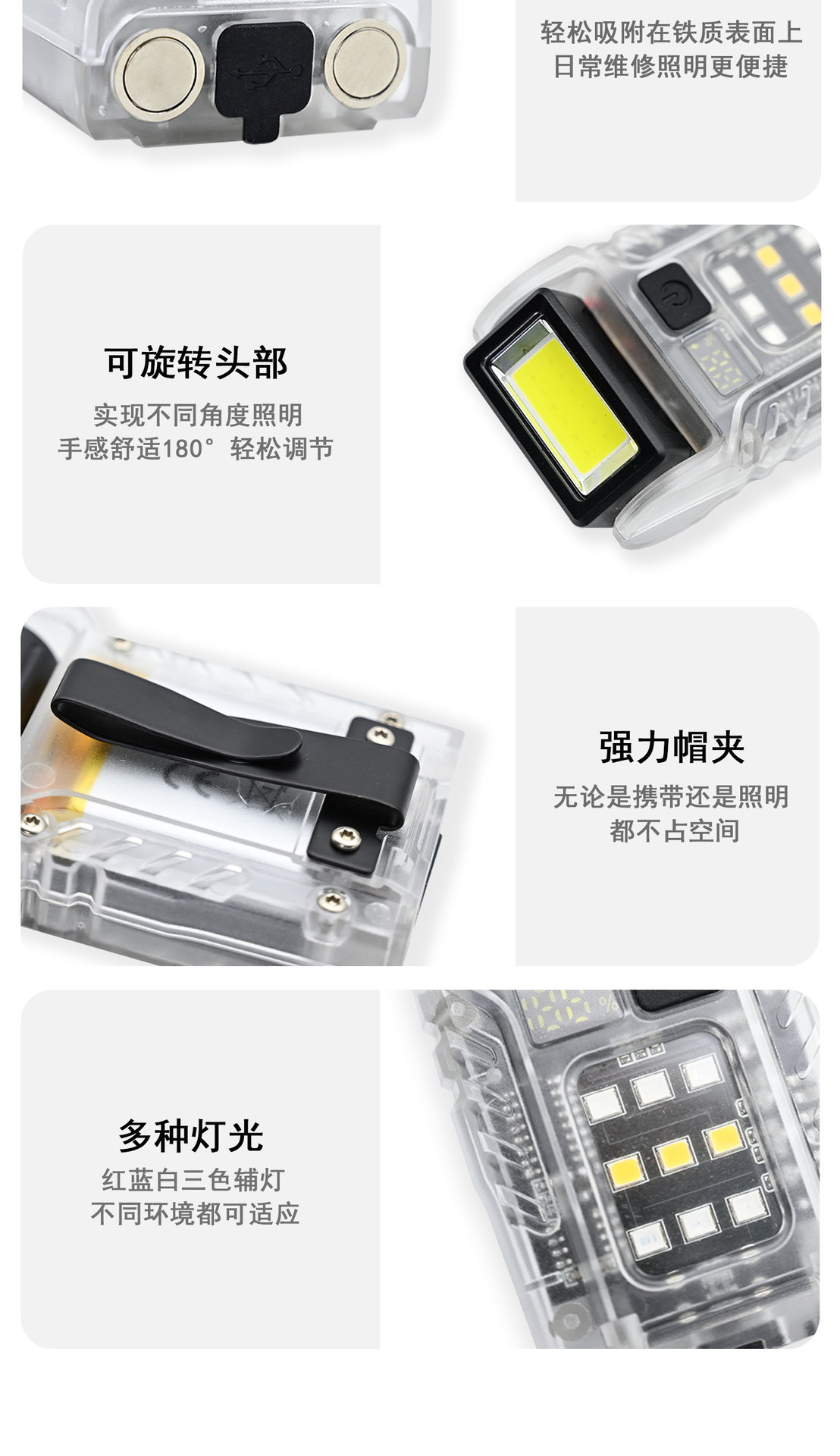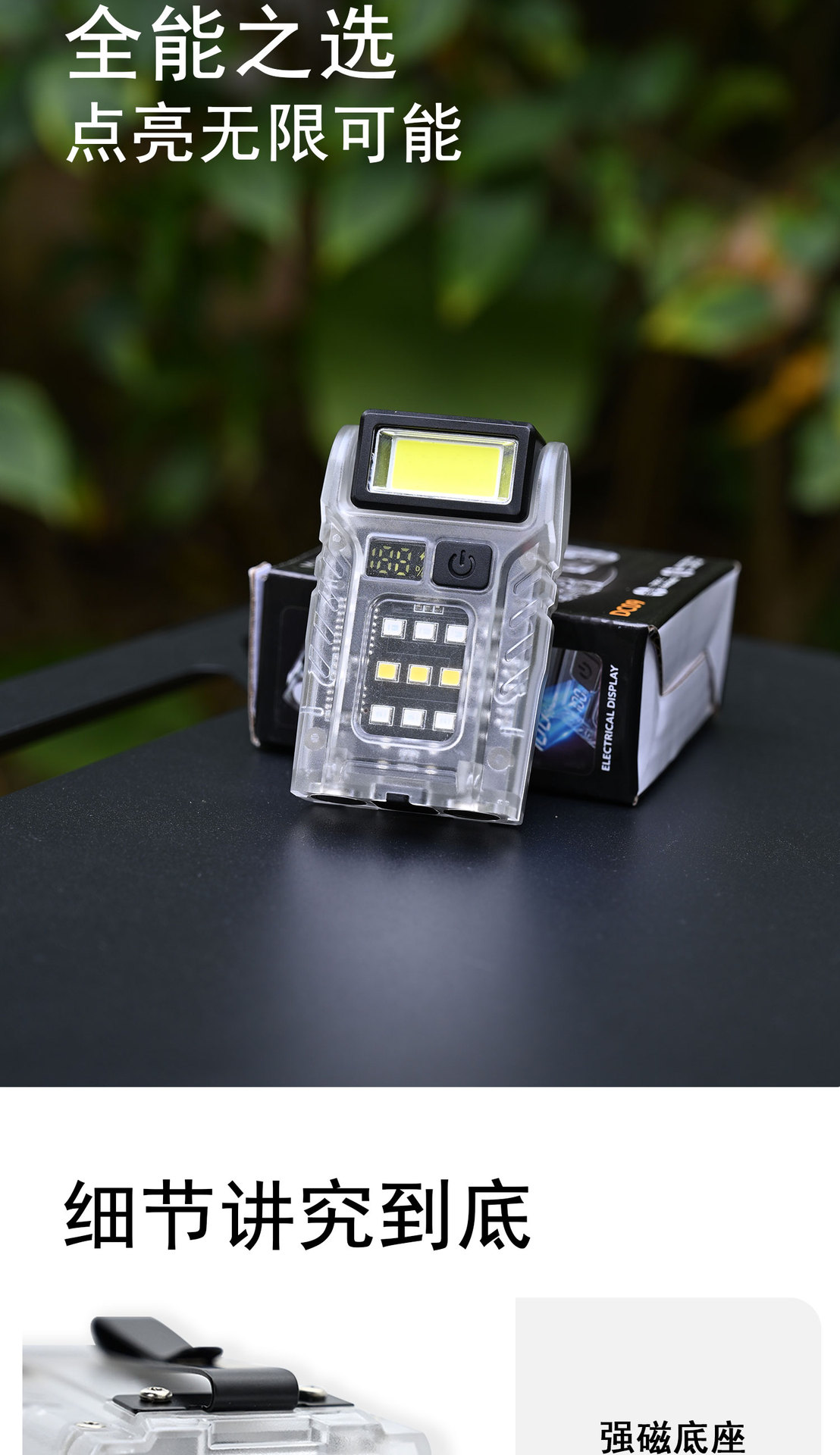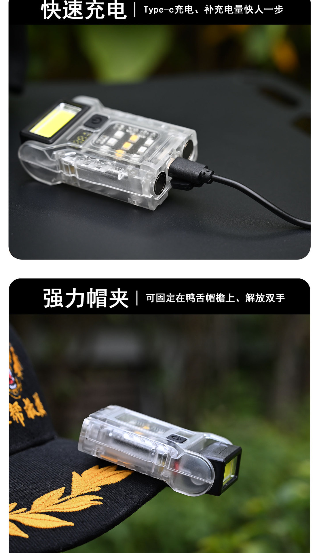 戶外可攜式多功能夜光cob工作燈led迷你手電筒強光爆亮長續航夾帽燈