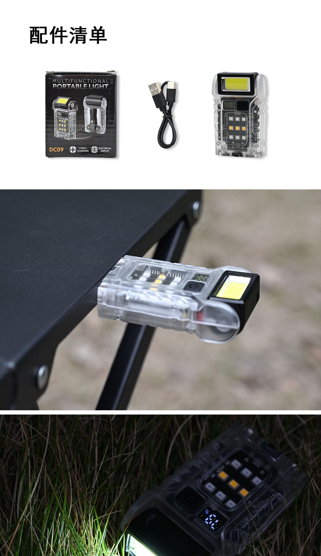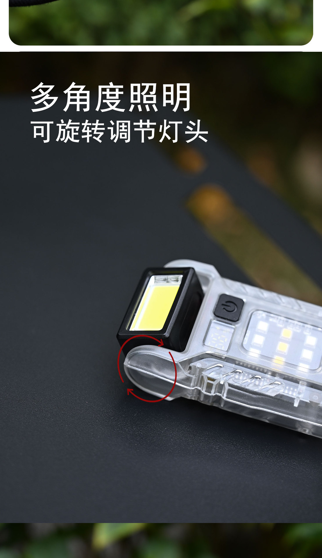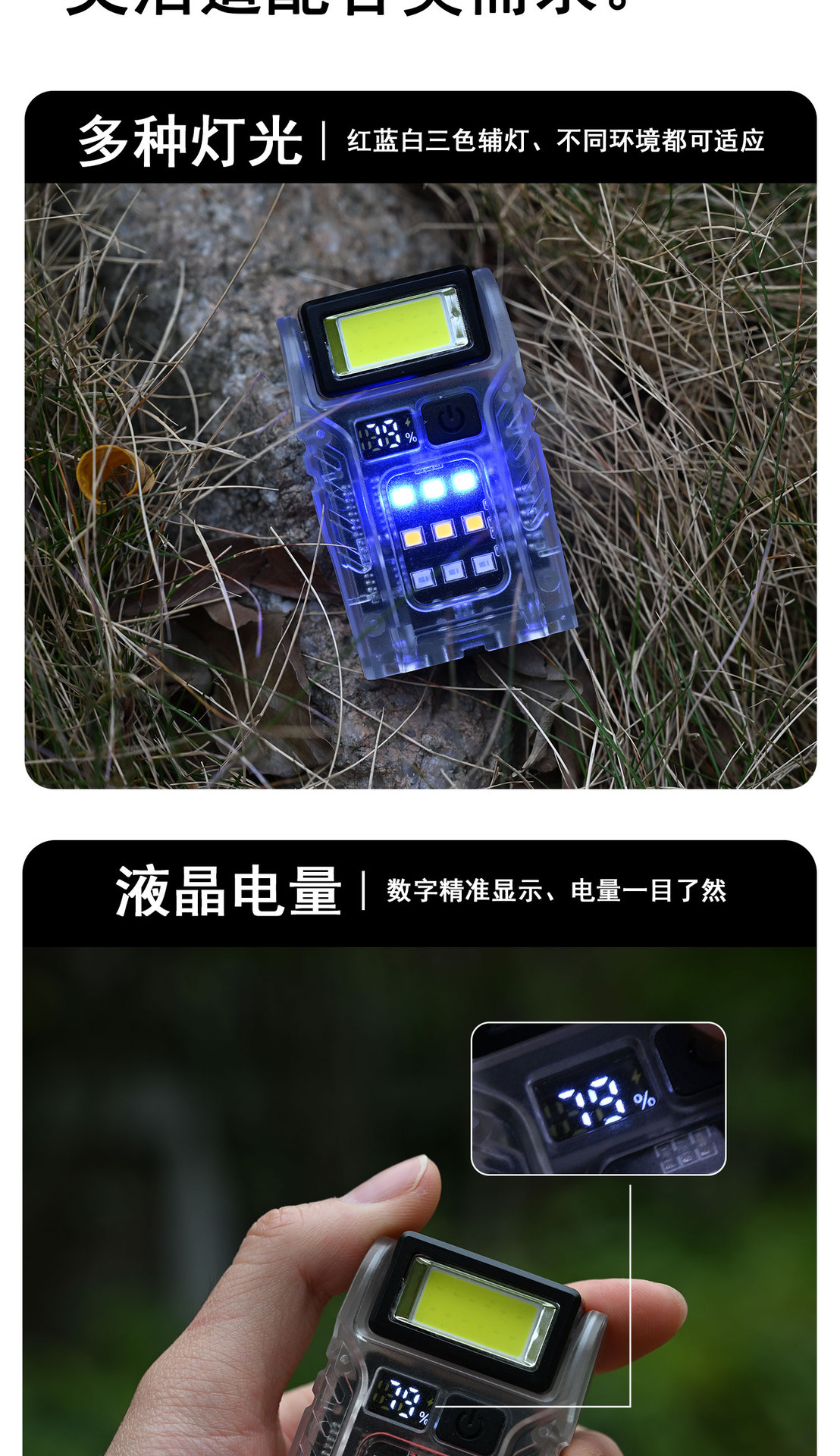 戶外可攜式多功能夜光cob工作燈led迷你手電筒強光爆亮長續航夾帽燈