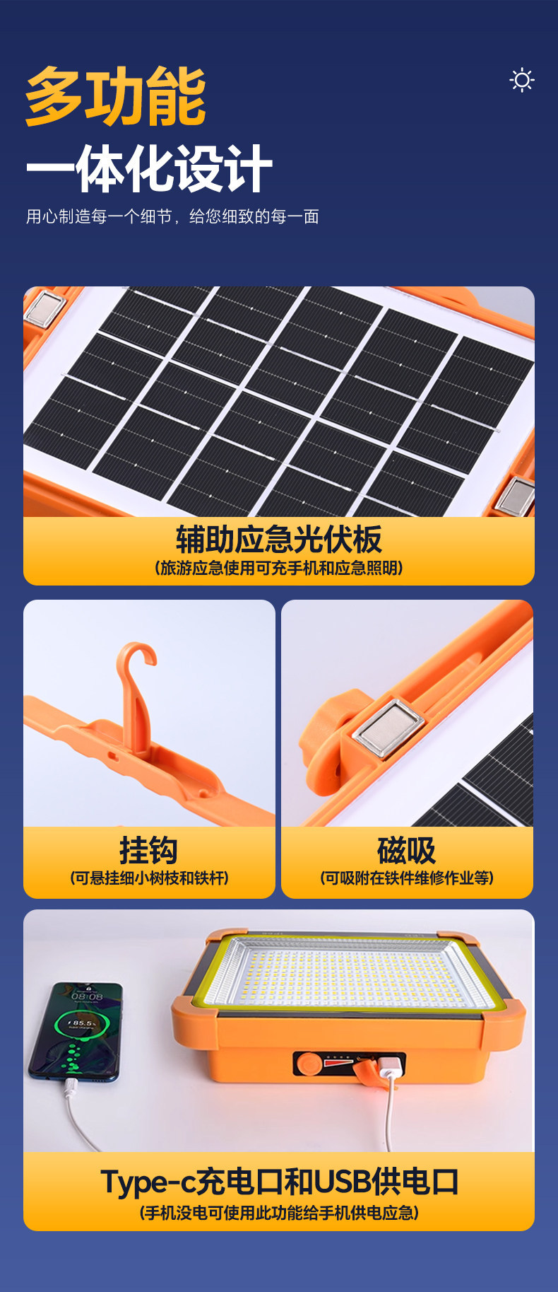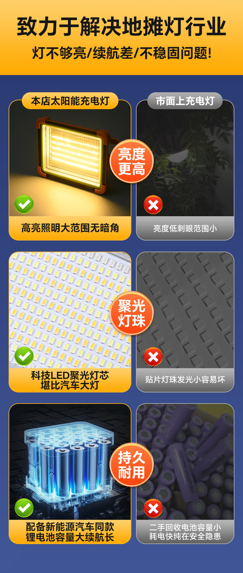 太陽能擺攤燈夜市燈擺地攤戶外燈露營應急照明超長續航超亮充電燈